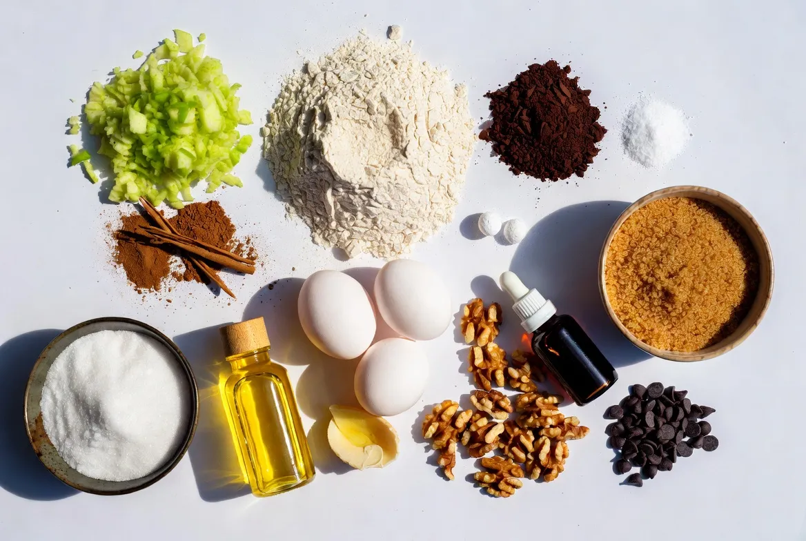 Each ingredient plays a key role. The grated apples add moisture and flavor. Cocoa powder brings a rich taste. The sugars sweeten and help with texture. Eggs bind everything together, while oil keeps them soft and moist.