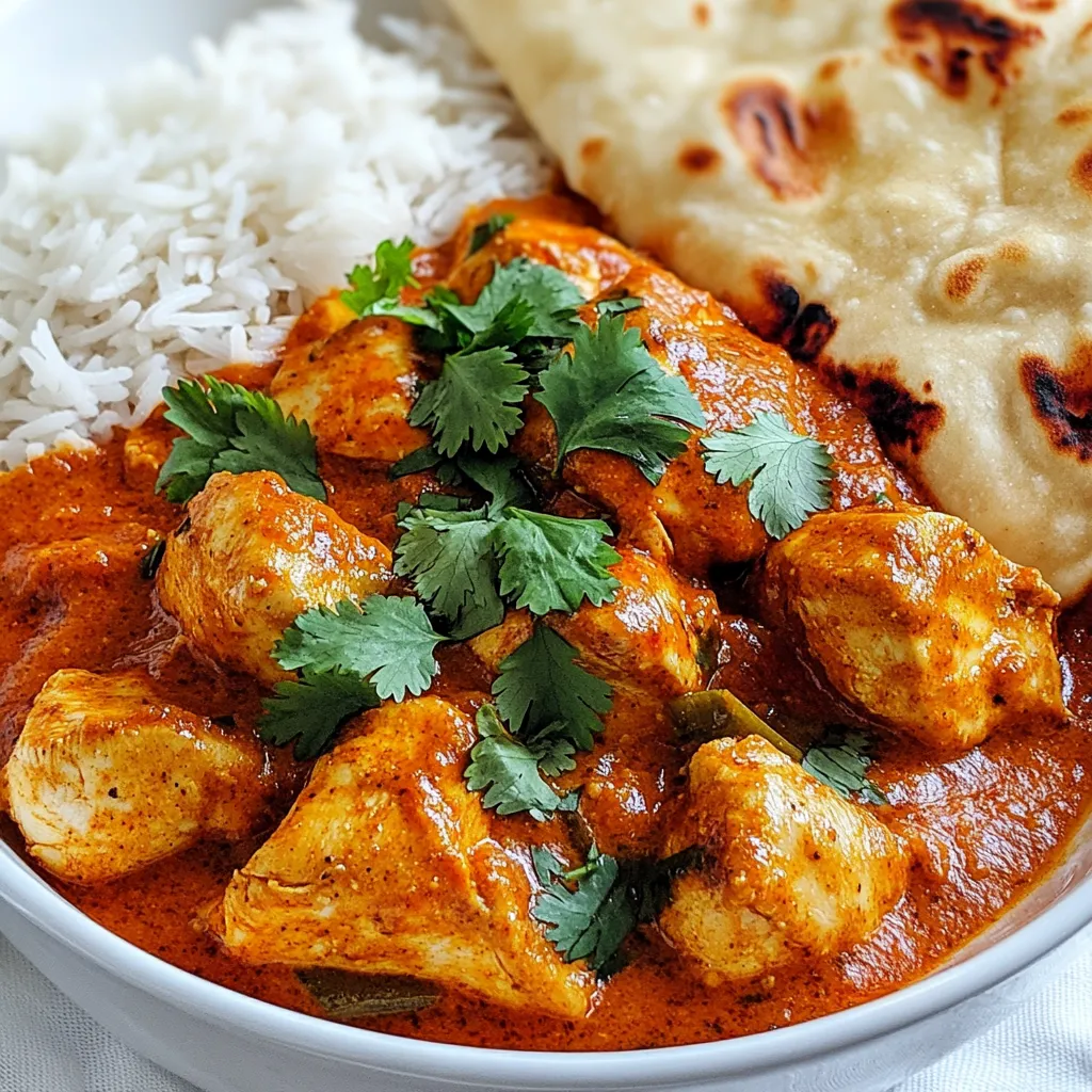Serve your chicken curry in a bowl. Garnish it with fresh cilantro for a burst of color. Pair it with warm naan or steamed basmati rice. These sides help balance the spice. You can also add a side of yogurt or raita to cool things down. Enjoy your meal with friends and family for a true taste of India!