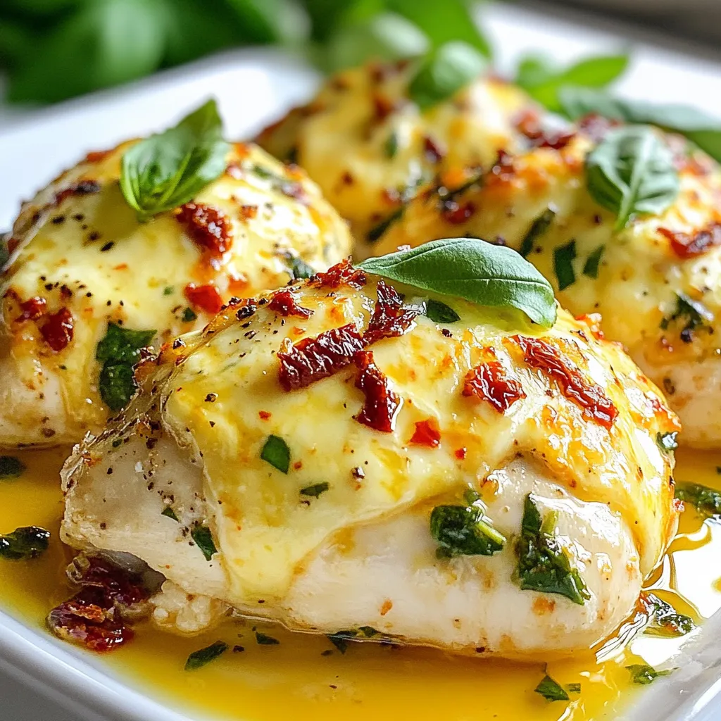 I drizzle olive oil on top before baking. It adds a nice golden color and helps keep the chicken moist. Fresh basil leaves can be a bright garnish. They make the dish look pretty and fresh.