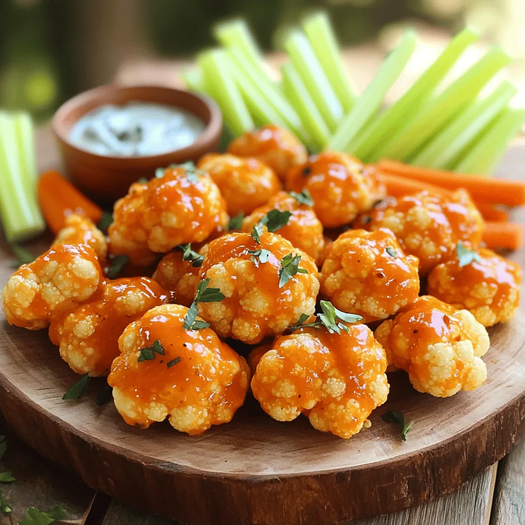 Buffalo Cauliflower Bites pair well with several items. I love serving them with fresh celery sticks and carrot sticks. They add a nice crunch and contrast. You can also offer blue cheese or ranch dressing for dipping. This adds a creamy touch that balances the spice.