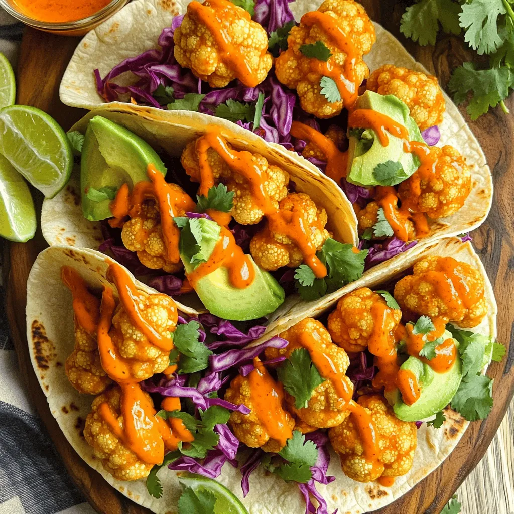 The star of this dish is the cauliflower. It gives a nice crunch and can soak up flavors well. The batter, made from flour and almond milk, will coat the florets. This mixture helps create a crispy texture when baked. The buffalo sauce adds a spicy kick that makes these tacos stand out.