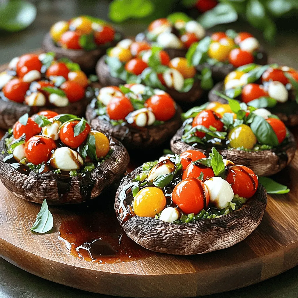 Spoon the Caprese filling generously into each portobello mushroom cap. Press down slightly so the filling stays in place. Preheat your oven to 400°F (200°C). Bake the stuffed mushrooms for 20 to 25 minutes. They should become tender, and the cheese will bubble. After baking, let them cool for a few minutes. Drizzle with more balsamic glaze and garnish with extra basil leaves before serving. Enjoy your delicious Caprese stuffed portobellos!