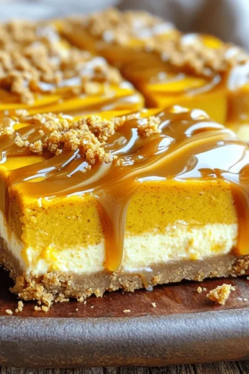 - Pumpkin Caramel Cheesecake Bars with Gingersnap Base