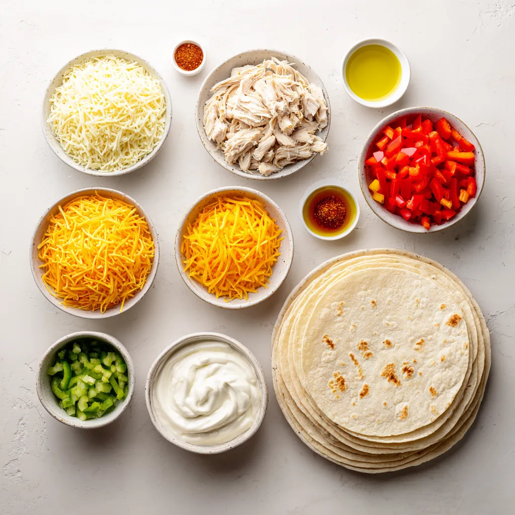 For cheesy chicken quesadillas, you need simple and tasty items. Here’s what to gather: