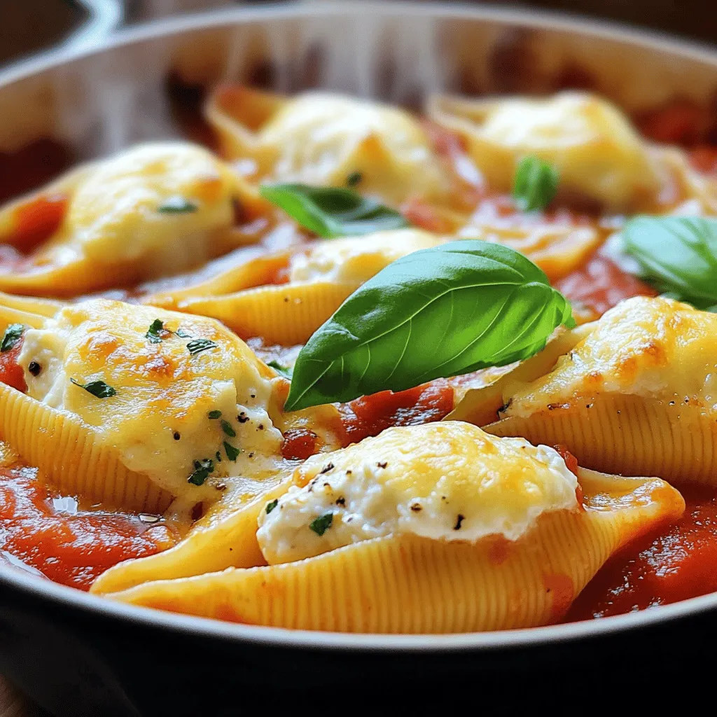 For this cheesy stuffed shells marinara recipe, you need some key ingredients. The large pasta shells hold the filling well and make a great base. Ricotta cheese gives a creamy texture. Shredded mozzarella melts beautifully and adds a nice stretch. Parmesan cheese adds a sharp flavor that balances the dish.