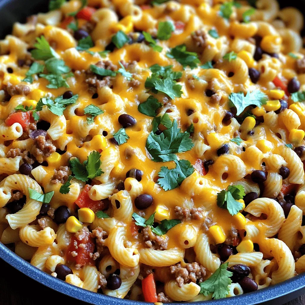 You need these core ingredients to create a tasty Cheesy Taco Pasta Skillet. The elbow macaroni gives the dish a nice bite. Ground beef or turkey provides protein and flavor. Taco seasoning adds that classic taco taste. Diced tomatoes with green chilies give a nice kick. Beef broth keeps everything moist and rich. Corn adds sweetness, while black beans boost fiber.