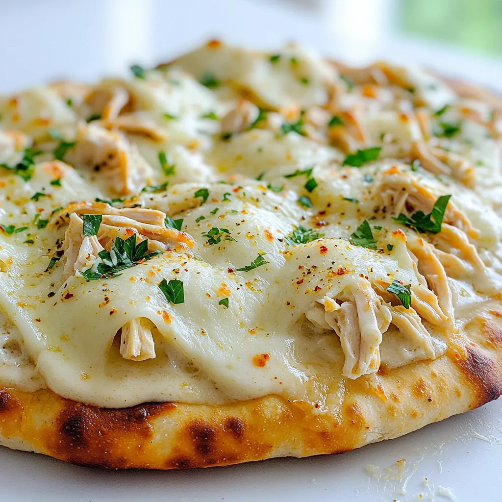 You can swap flatbreads for pita or tortillas. They will still taste great. For the chicken, use rotisserie chicken for quick prep. If you want less fat, use low-fat Alfredo sauce. You can also use vegan cheese if you're avoiding dairy. For seasoning, fresh garlic can replace garlic powder.