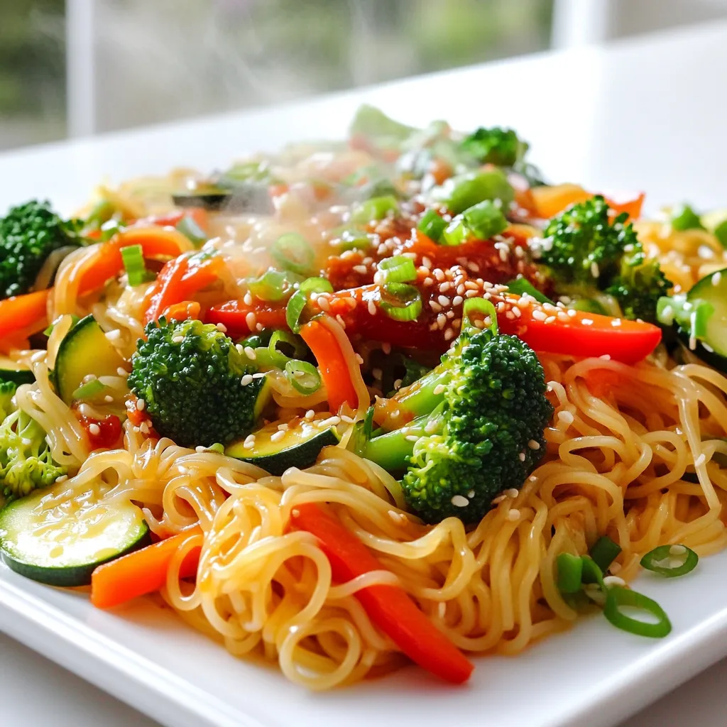In this dish, the ramen noodles are the star. They soak up all the flavors and give your meal a nice base. The vibrant vegetables bring color and crunch. The red bell pepper adds sweetness, while broccoli brings a nice bite. Carrots and zucchini add texture and taste. Garlic and ginger give a warm, fragrant touch.