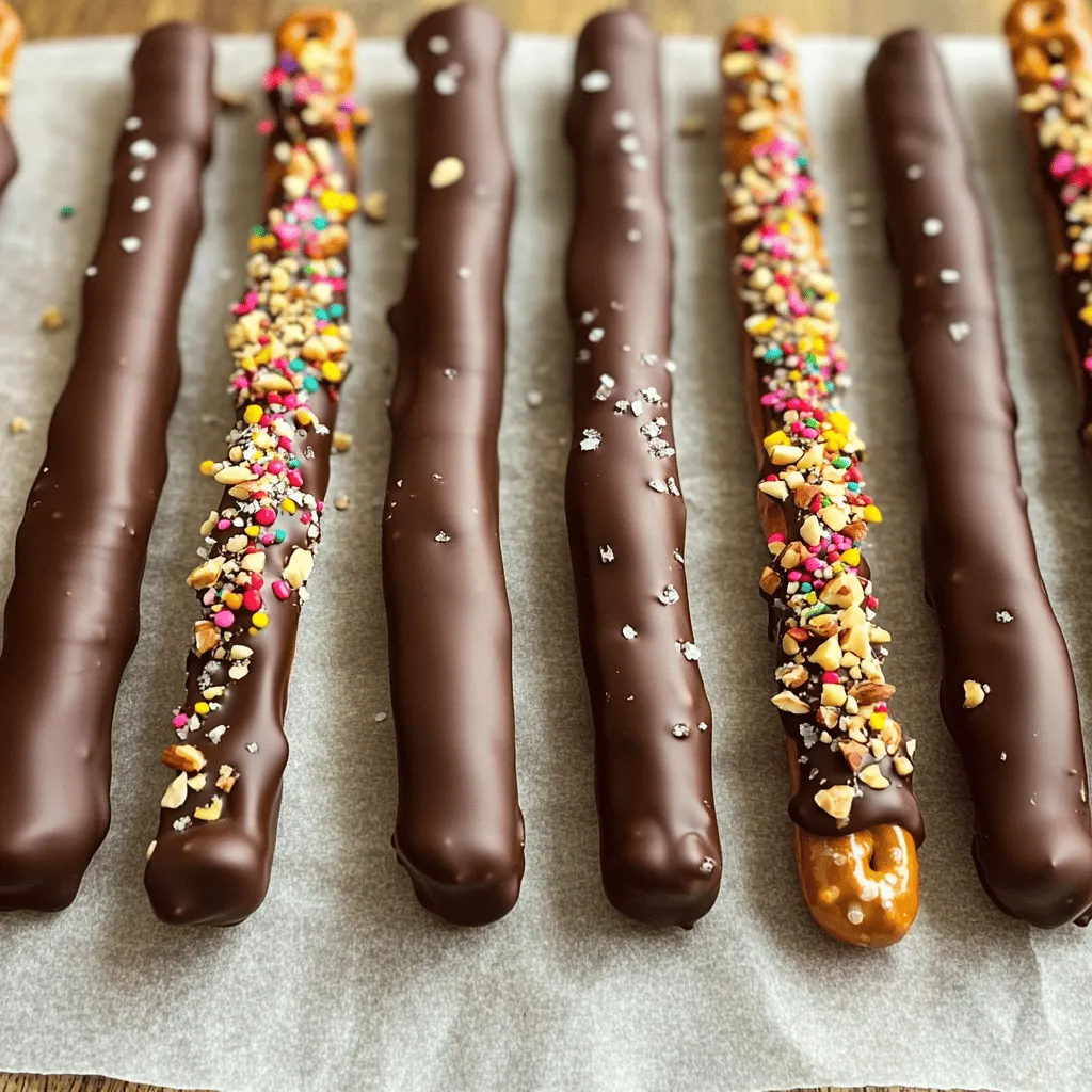 You need simple ingredients to make these treats. The pretzel rods give a nice crunch. Dark chocolate chips provide rich flavor. The coconut oil helps the chocolate melt smoothly. You can choose any nuts you like. Colorful sprinkles add fun and joy. A touch of sea salt enhances the taste.