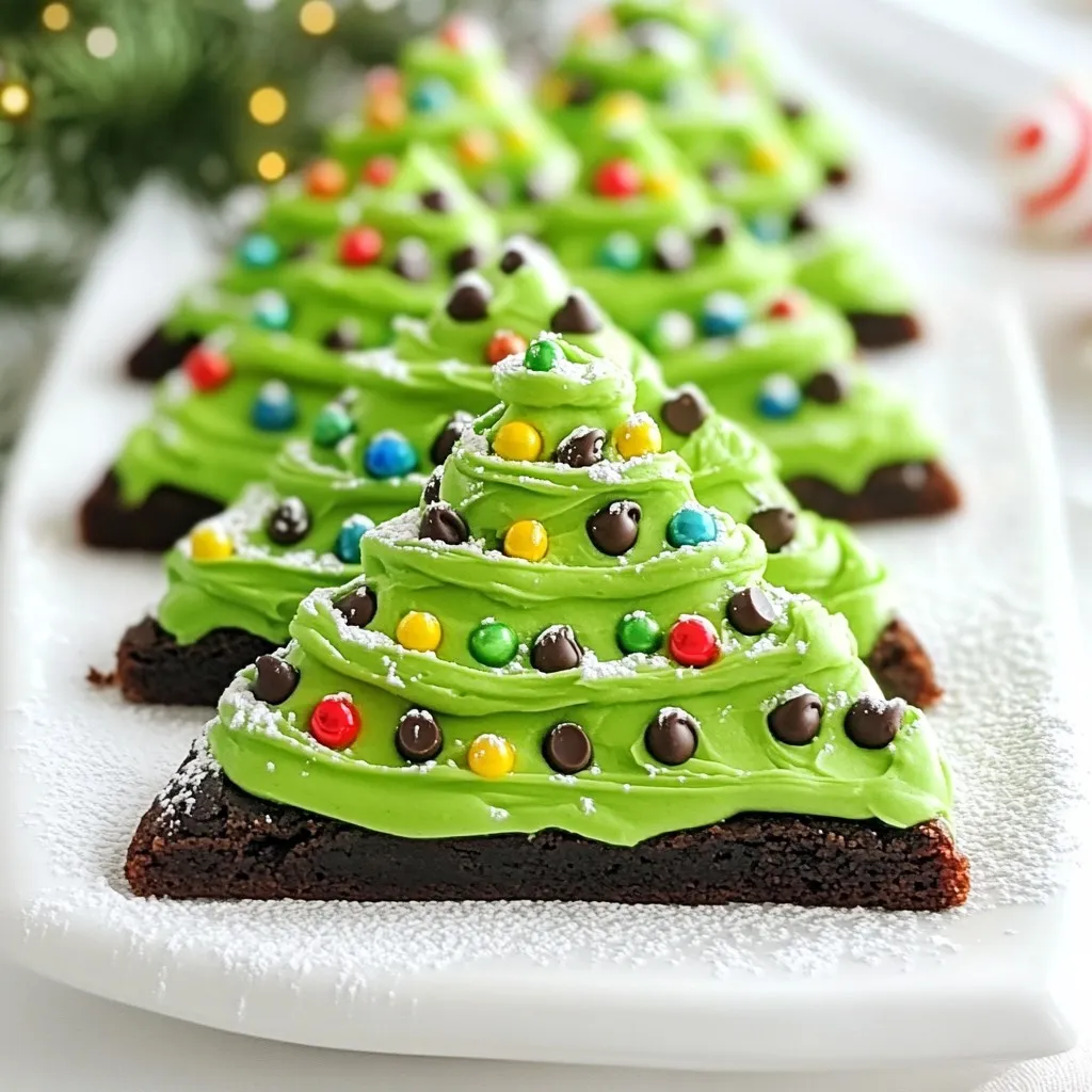 When serving your brownie trees, arrange them on a festive platter. A cake stand can add height and drama. To create a snowy effect, sprinkle powdered sugar on top. You can also use coconut flakes to mimic fresh snow. For a nice touch, add fresh mint leaves or edible flowers next to each brownie. This makes your dessert look even more special.