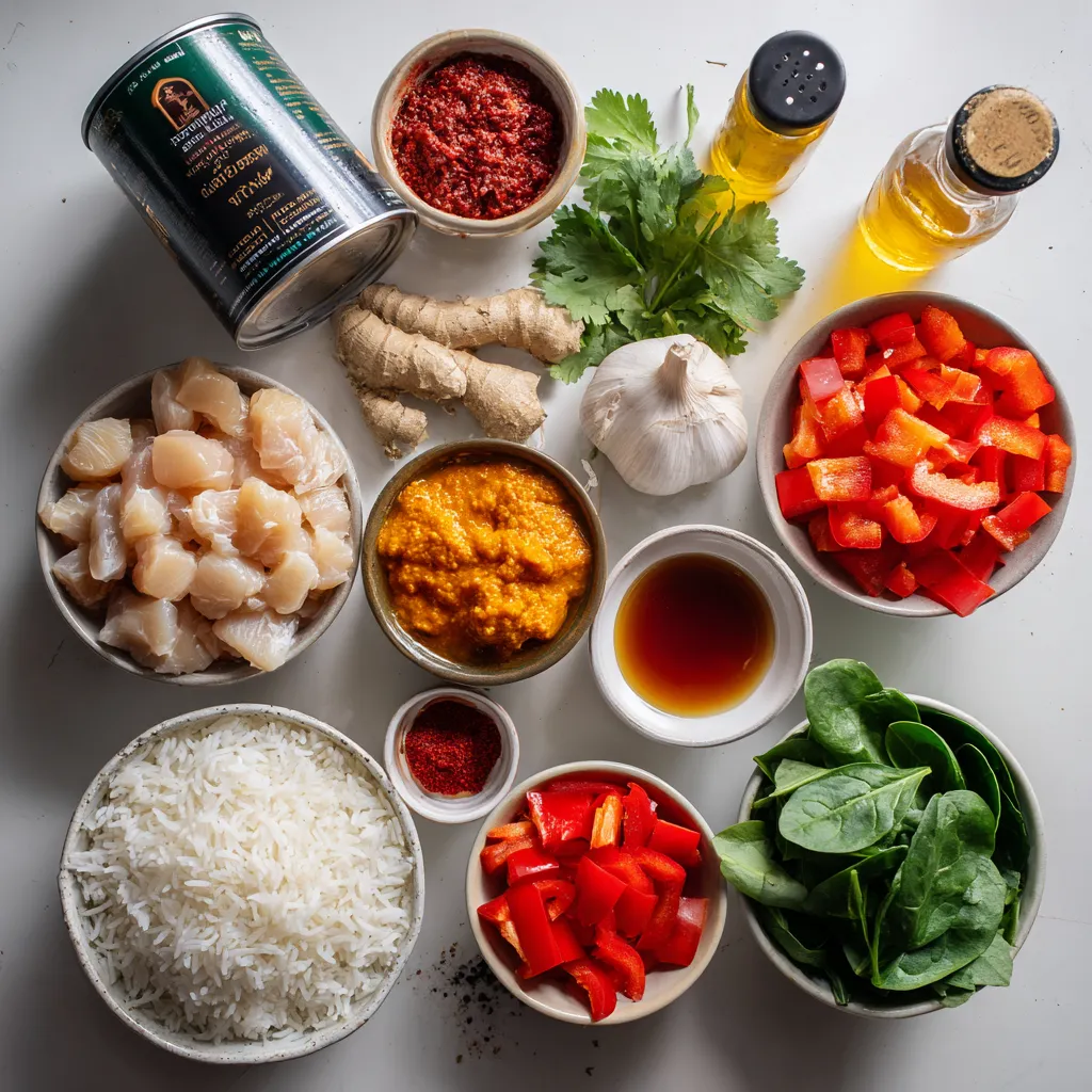 Aromatics like onion, garlic, and ginger are essential. They add layers of flavor right from the start. The red bell pepper adds sweetness and color. Spinach brings freshness and nutrients, making the dish vibrant.