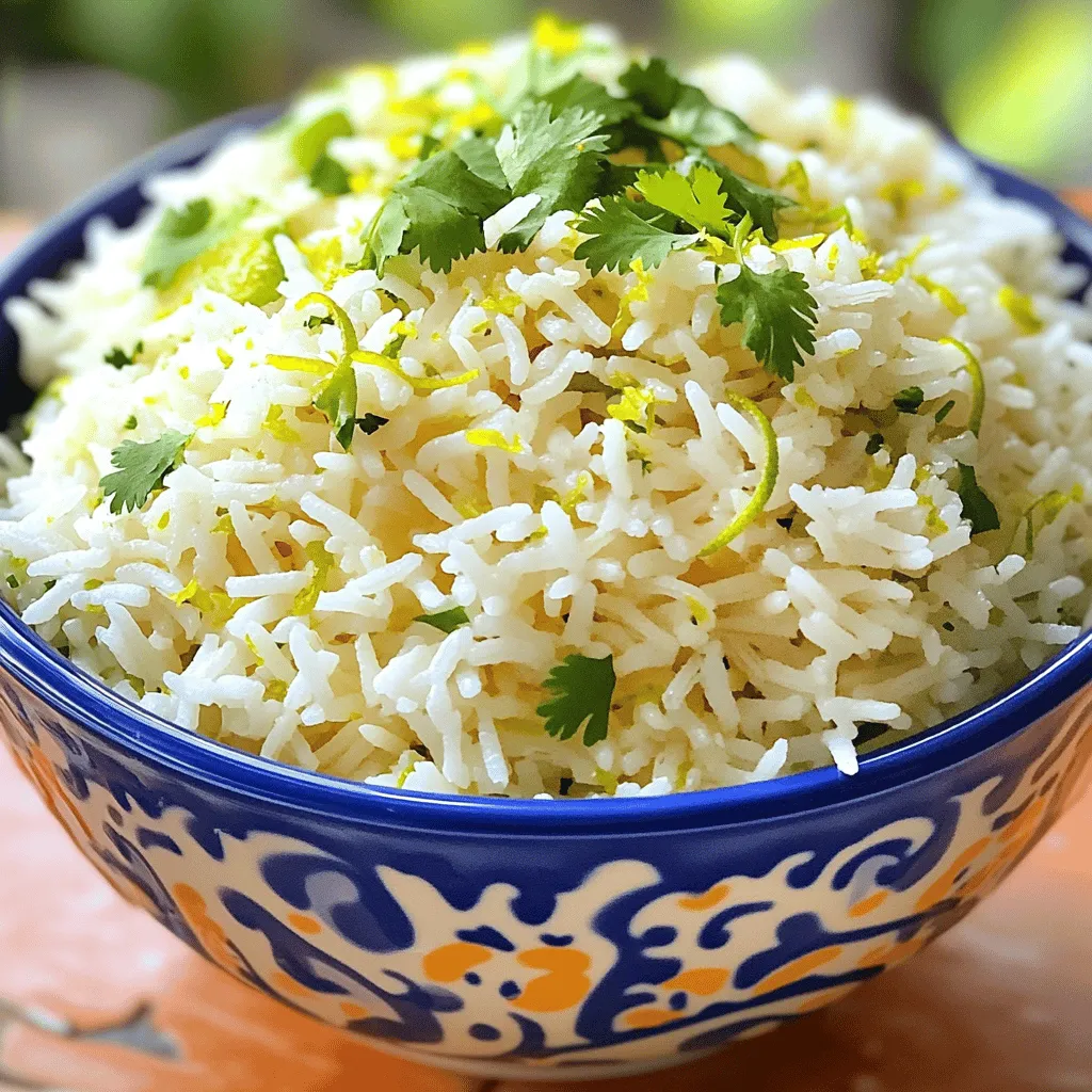Now, uncover the saucepan and gently fluff the rice with a fork. Squeeze in the lime juice for a fresh taste. Serve the rice in a large bowl or in individual servings. Top with chopped cilantro for a pop of color and flavor. Enjoy your delicious coconut lime rice!
