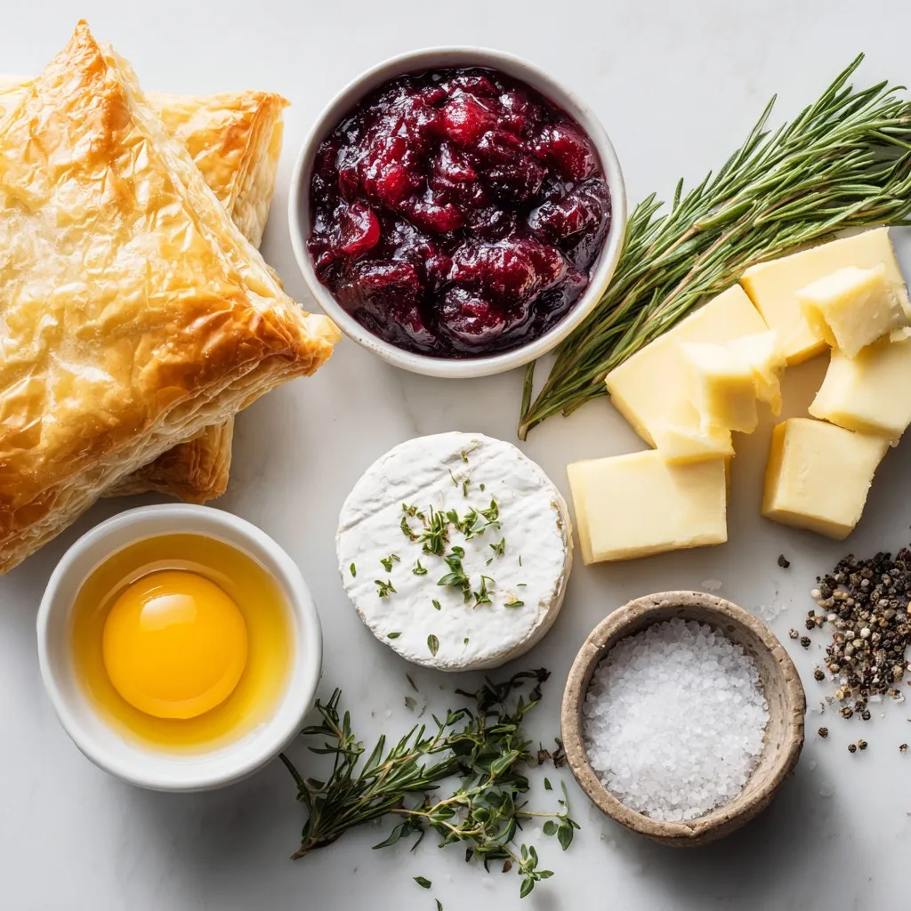 Making Cranberry Brie Puff Pastry Bites is easy with just a few key ingredients. Here they are:
