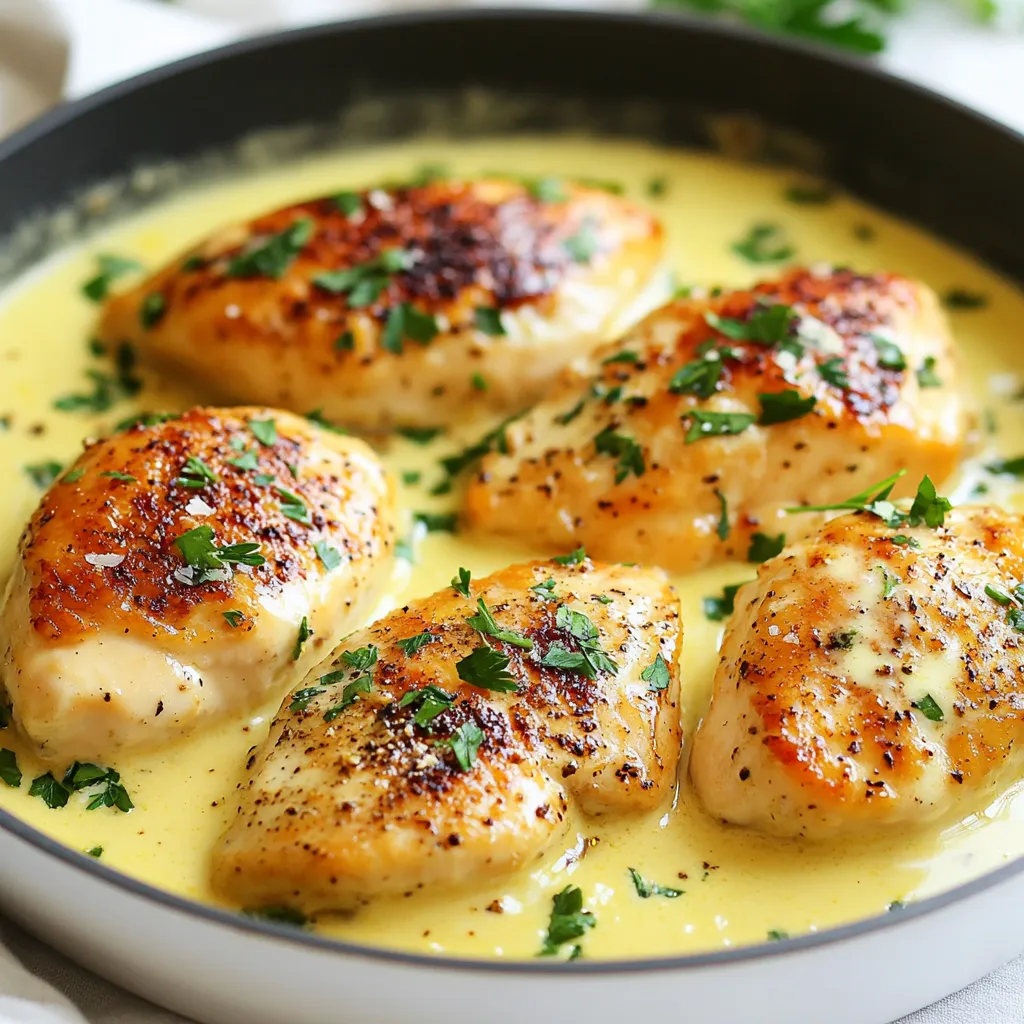 Now it's time to return the chicken to the skillet. Place the chicken breasts back in the creamy sauce. Spoon some of the sauce over the top. Let everything simmer together for about 3 to 4 minutes. This allows the chicken to soak up all the tasty flavors. Taste your sauce and adjust the seasoning with more salt or pepper if needed. Serve this dish over rice or pasta for a filling meal. Don't forget to garnish with fresh parsley for a nice touch!