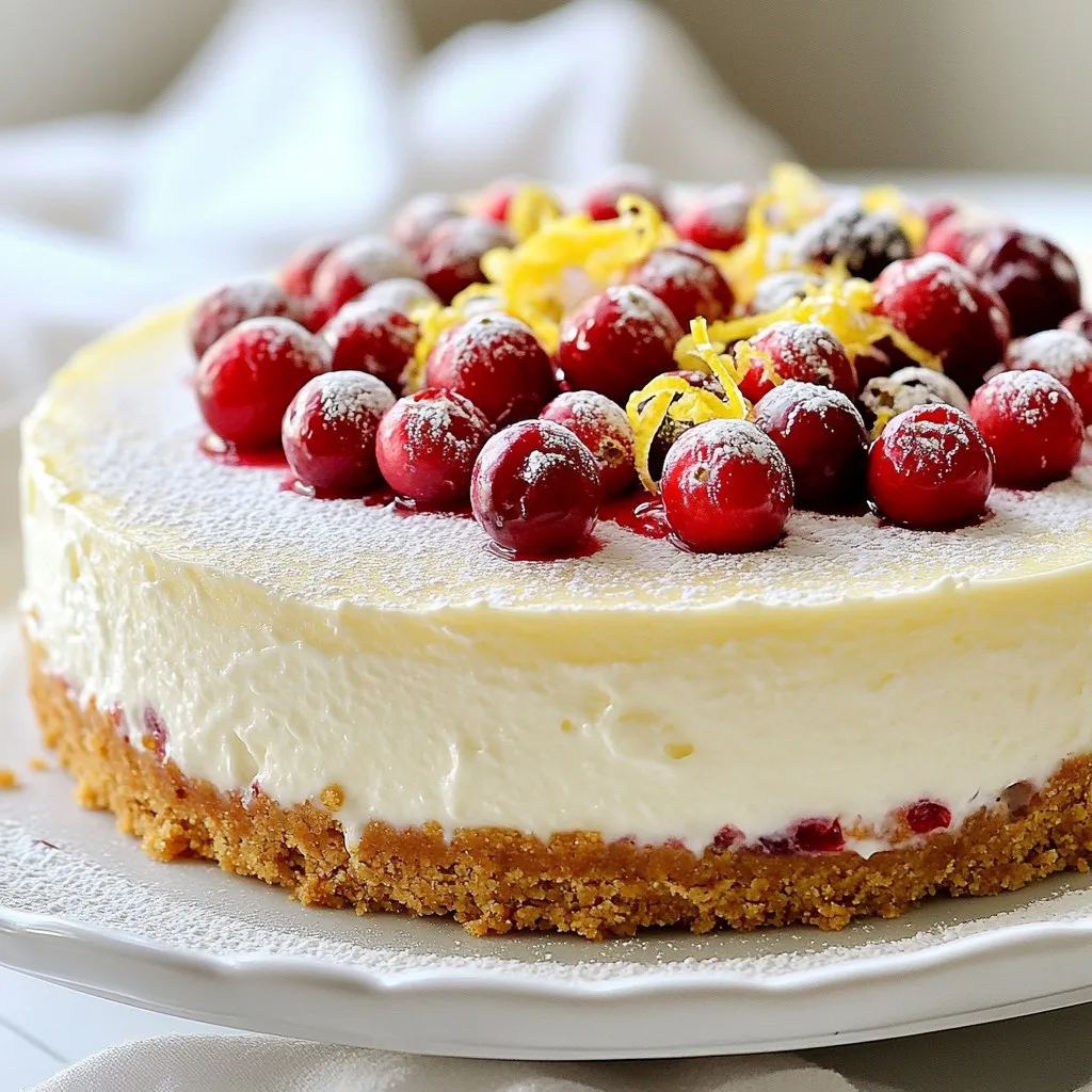 Cream cheese gives the cheesecake its rich, creamy texture. Make sure it’s softened for easy mixing. Sour cream adds a tangy flavor and keeps it moist. The fresh cranberries provide a burst of tartness, balancing the sweetness well. The graham cracker crumbs form a crunchy crust. Use unsalted butter for the best taste, as it lets the other flavors shine.