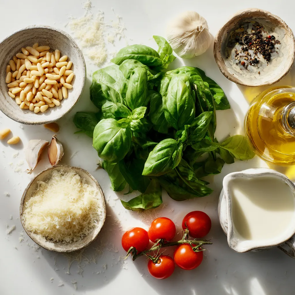 Main Ingredients for Creamy Pesto Sauce Pasta