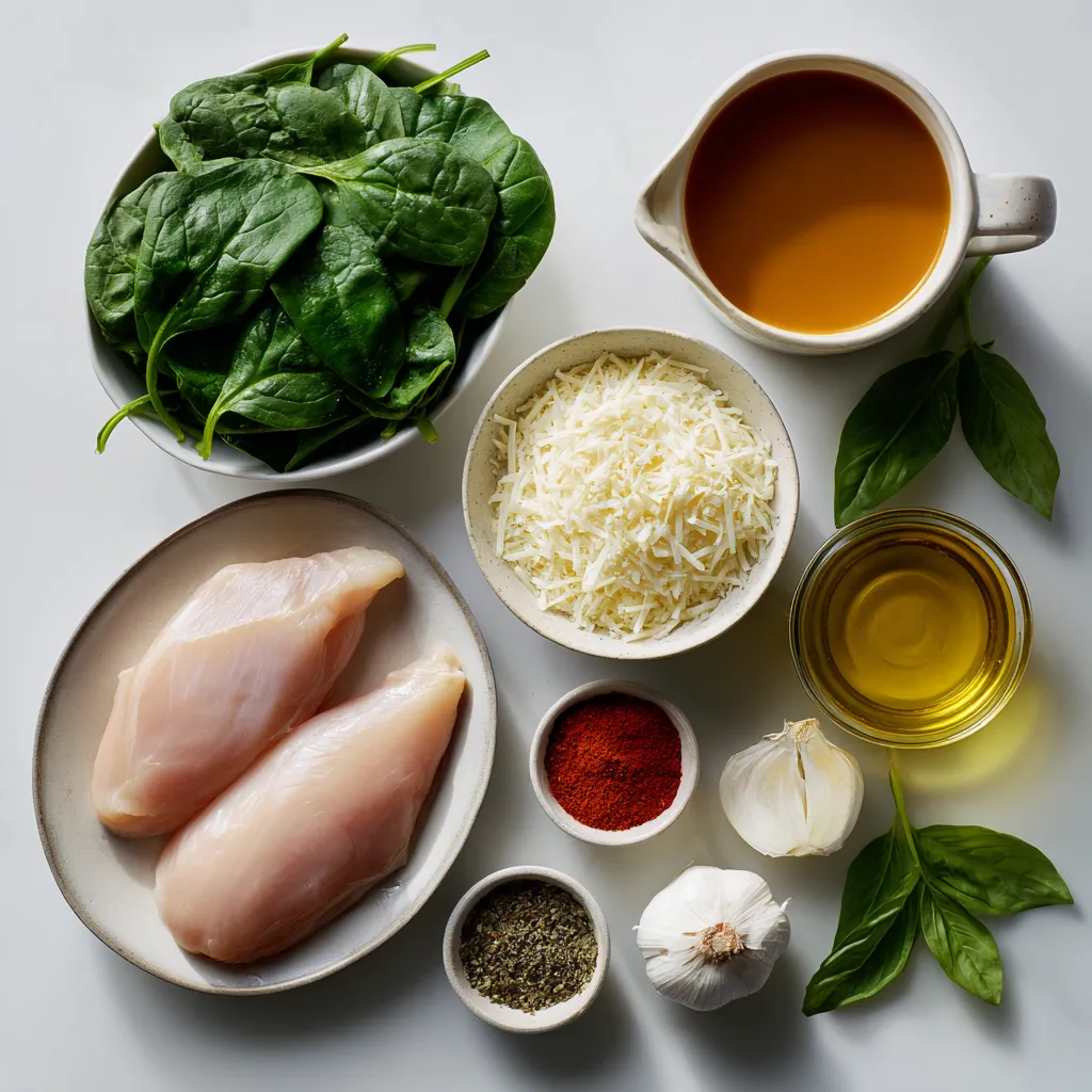 Don’t forget garlic. It adds a nice flavor. Onion powder and paprika bring in warmth and depth. You will also need fresh spinach. It wilts down beautifully in the sauce.