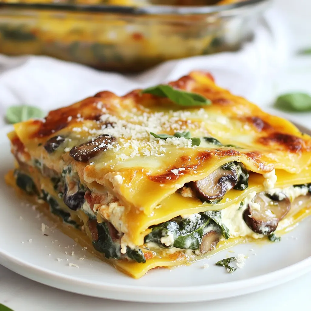 Store leftover lasagna in an airtight container. It can sit in the fridge for about three days. If you want to freeze it, wrap it tightly in foil or plastic wrap. To reheat, place it in the oven at 350°F (175°C) for 20-30 minutes. You can add a splash of marinara sauce to keep it moist. Enjoy your creamy spinach mushroom lasagna even after the first meal!