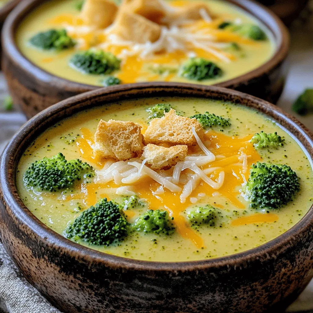 Each ingredient plays a role. The broccoli gives us a fresh taste. The onion and garlic add rich flavors. Butter helps create a base for our soup. Vegetable broth adds depth. Sharp cheddar cheese brings the creaminess we love! The heavy cream makes it smooth, while mustard powder gives a subtle kick. Don’t forget salt and pepper to enhance everything. You can add croutons or extra cheese on top for fun.