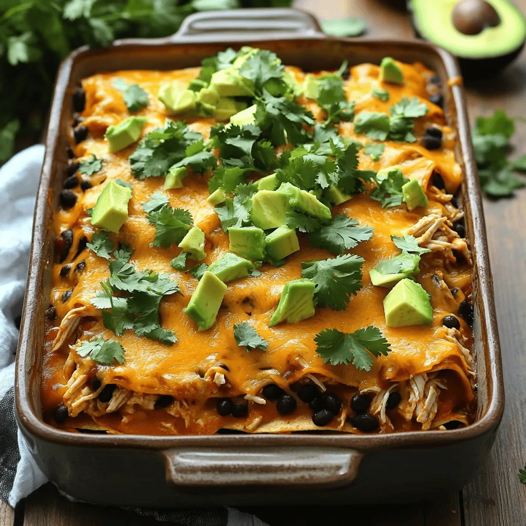 You can make this dish your own. Add toppings like sour cream or avocado for creaminess. Jalapeños can spice things up. If you want a different flavor, use Monterey Jack or pepper jack cheese. These changes keep the meal fun and unique!Enjoy gathering these tasty ingredients for your Easy Chicken Enchilada Casserole!