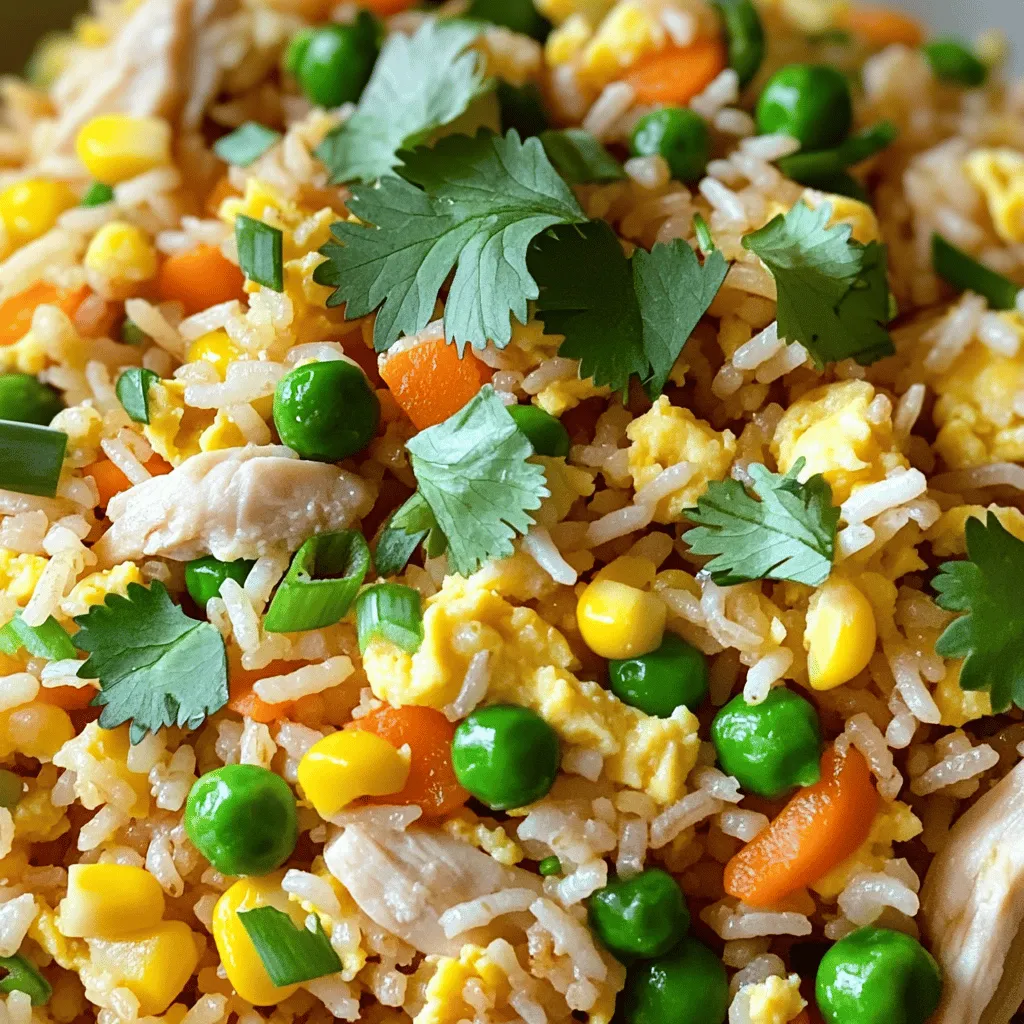 To make easy chicken fried rice, you need a few key items. First, jasmine rice works best. It gives a nice texture and flavor. You can use cooked rice from the day before. This helps the rice stay fluffy. Next, add cooked chicken. You can use leftover chicken too. It saves time and adds flavor. Mixed vegetables like peas, carrots, and corn brighten the dish.