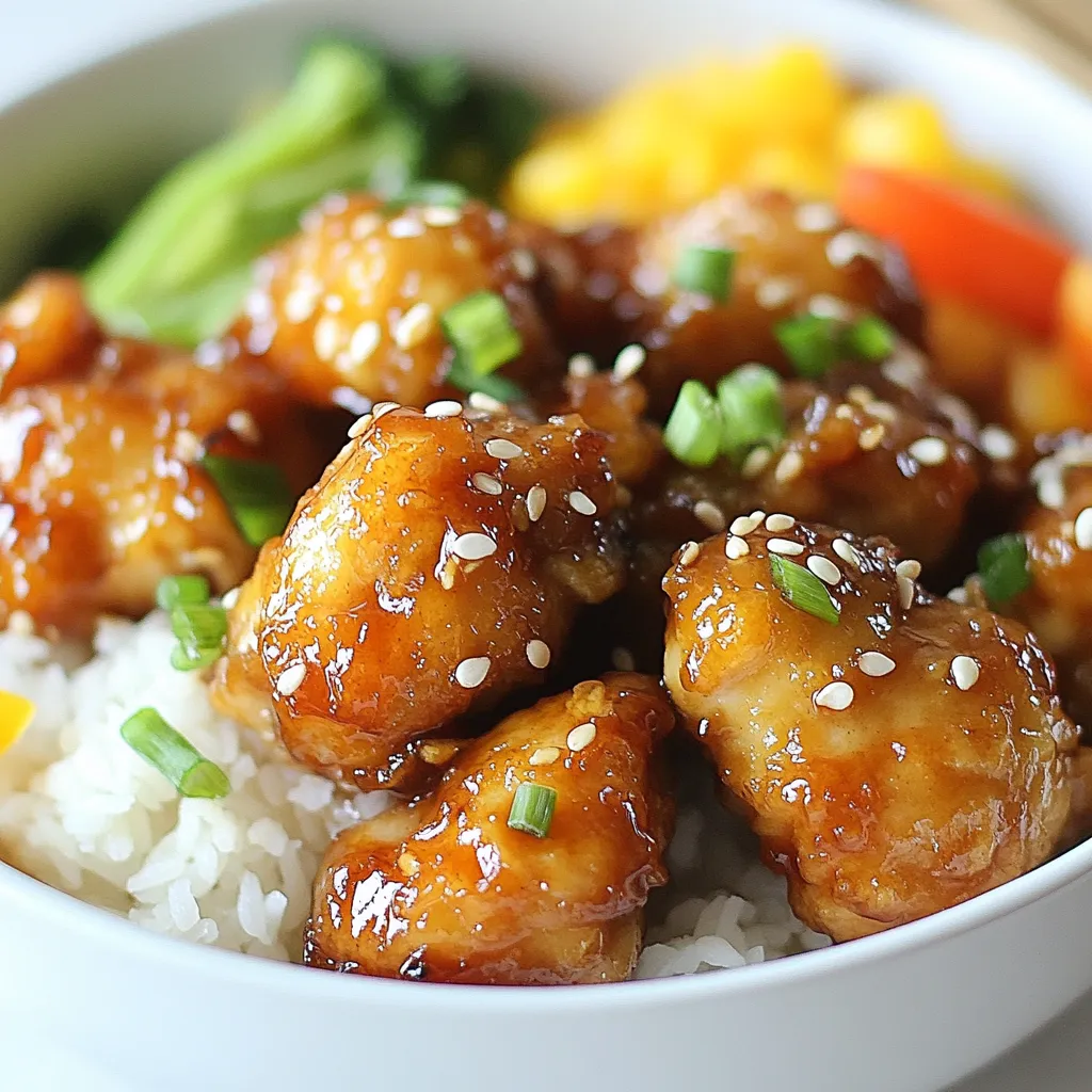 For plating, use a deep dish. This helps show off the glazed chicken. Add a side of steamed rice for texture. Stir-fried vegetables add color and nutrition. Garnish with green onions and sesame seeds for a pop of flavor. A colorful plate makes the meal more inviting.
