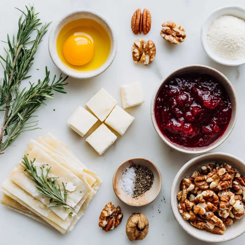 These ingredients make the perfect base for your fifteen-minute cranberry brie bites. Each component blends well, creating a tasty and festive appetizer.