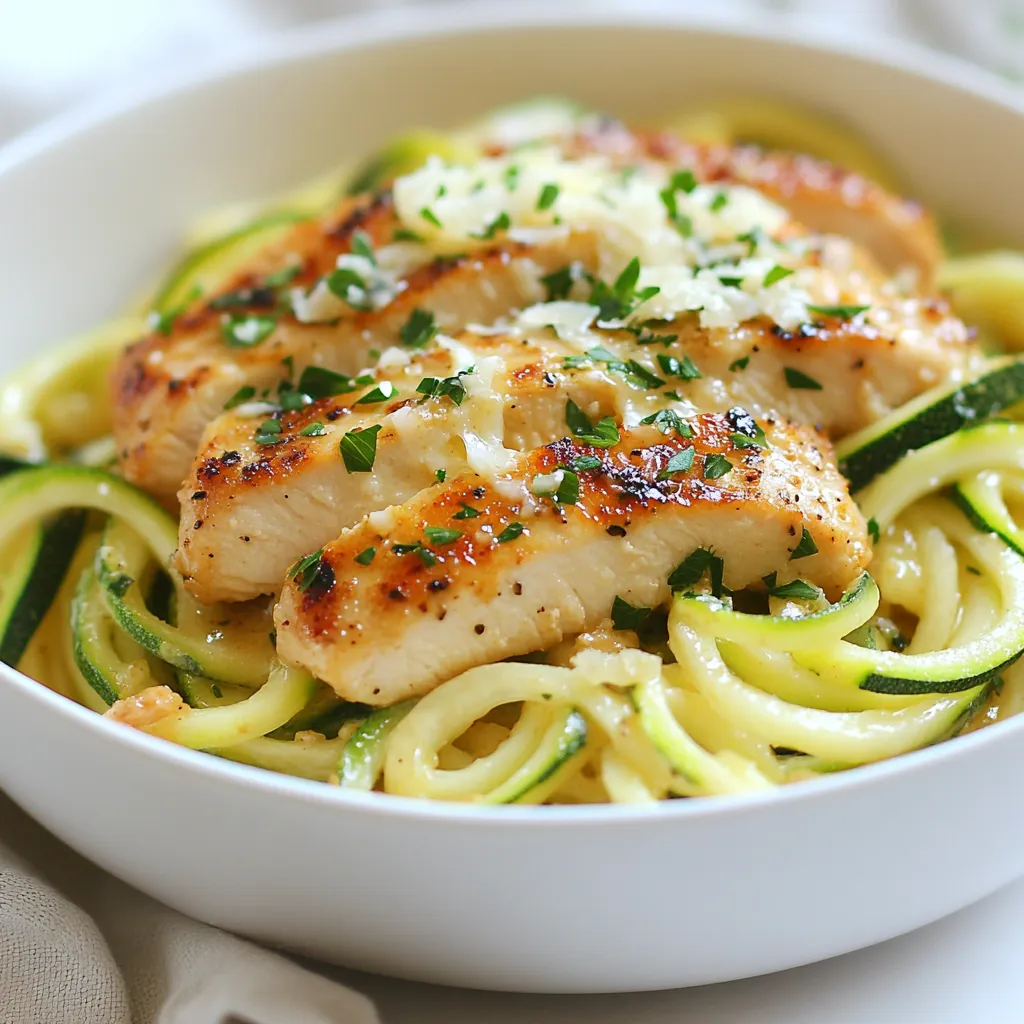This dish shines with fresh ingredients. The zucchini noodles bring a lightness that pairs well with the chicken. Chicken breast adds protein and keeps the meal filling. The garlic infuses the dish with a rich flavor.