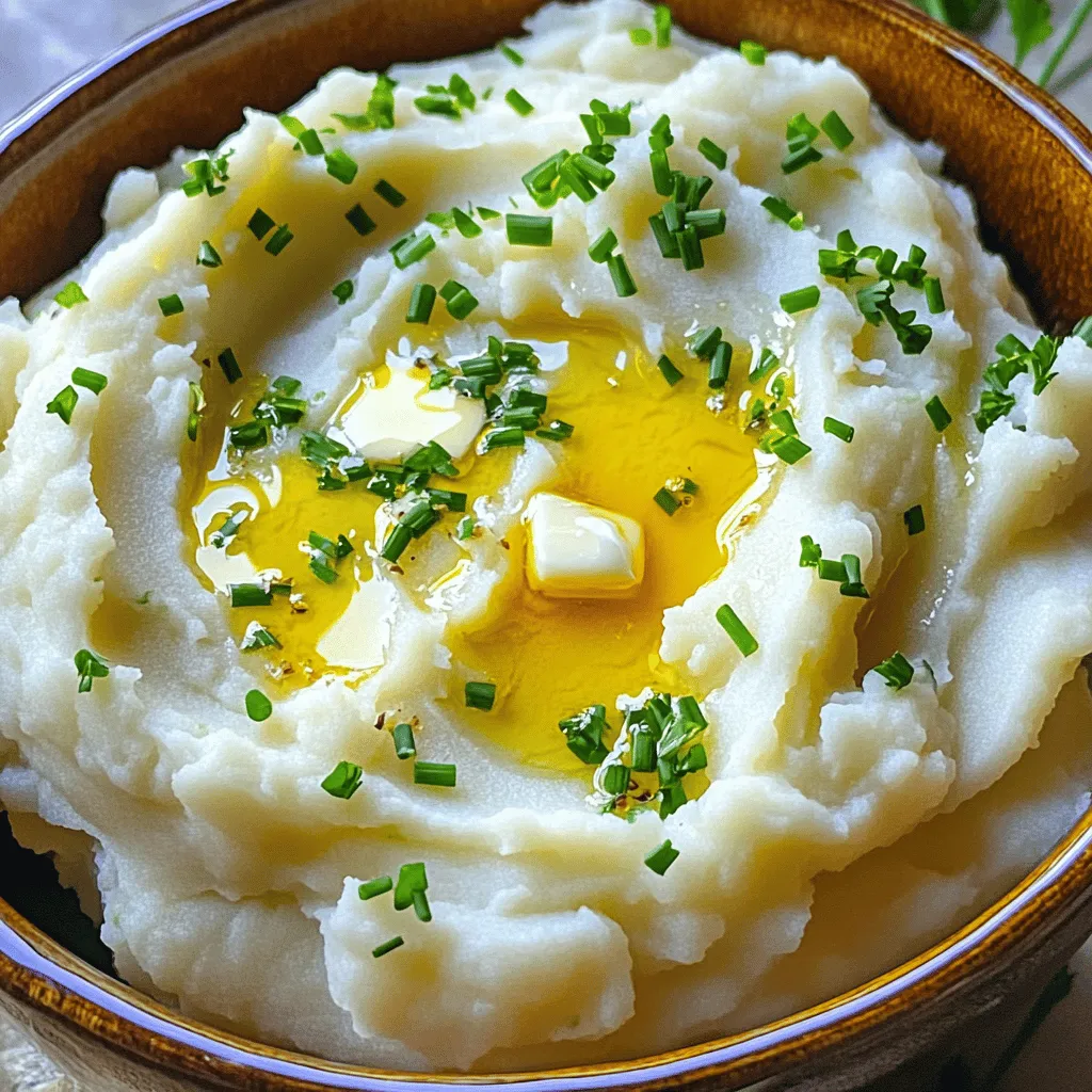 Yukon Gold potatoes work best for this dish. They are creamy and buttery. The garlic gives a strong flavor that lifts the dish. Unsalted butter adds richness without extra salt. Heavy cream makes the mash smooth and rich. Fresh herbs, like parsley and chives, bring a pop of color and freshness.