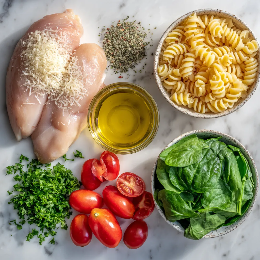 Gathering the right ingredients is key for this dish. I love using boneless, skinless chicken breasts because they cook fast and stay juicy. For pasta, I prefer twisted options like cavatappi or fusilli. They hold the sauce well, making every bite flavorful.