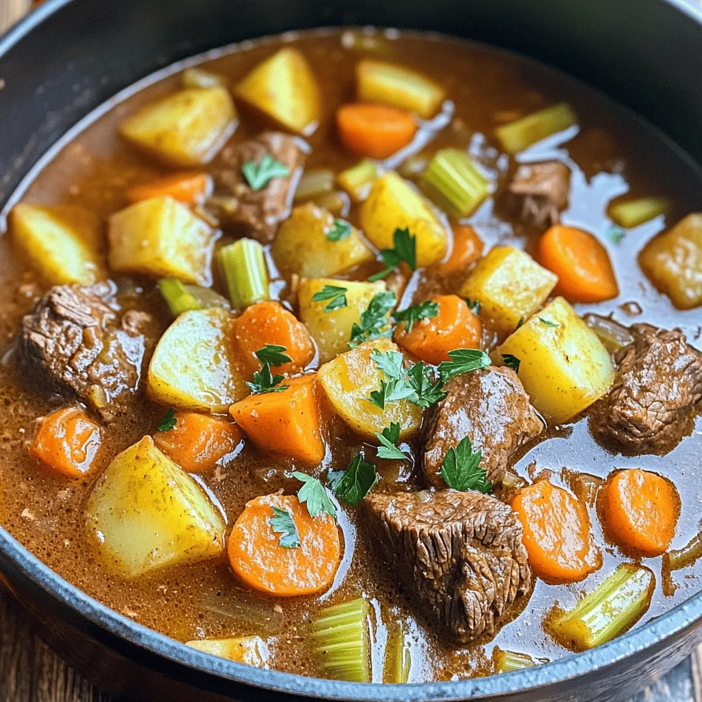 Start by gathering your ingredients. You want fresh beef and veggies. Cut the beef chuck into 1-inch cubes. Dice the onion, mince the garlic, and slice the carrots. Dice the celery and cube the potatoes. Having everything ready makes cooking easier.