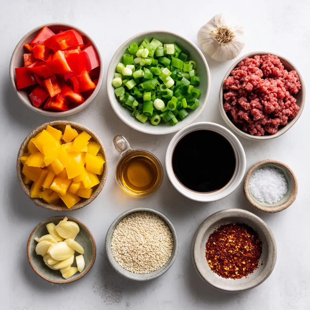 Colorful bell peppers make this dish pop. They add crunch and sweetness. Green onions bring a fresh taste. Sesame seeds add a nice touch for garnish. They give that extra crunch and flavor.