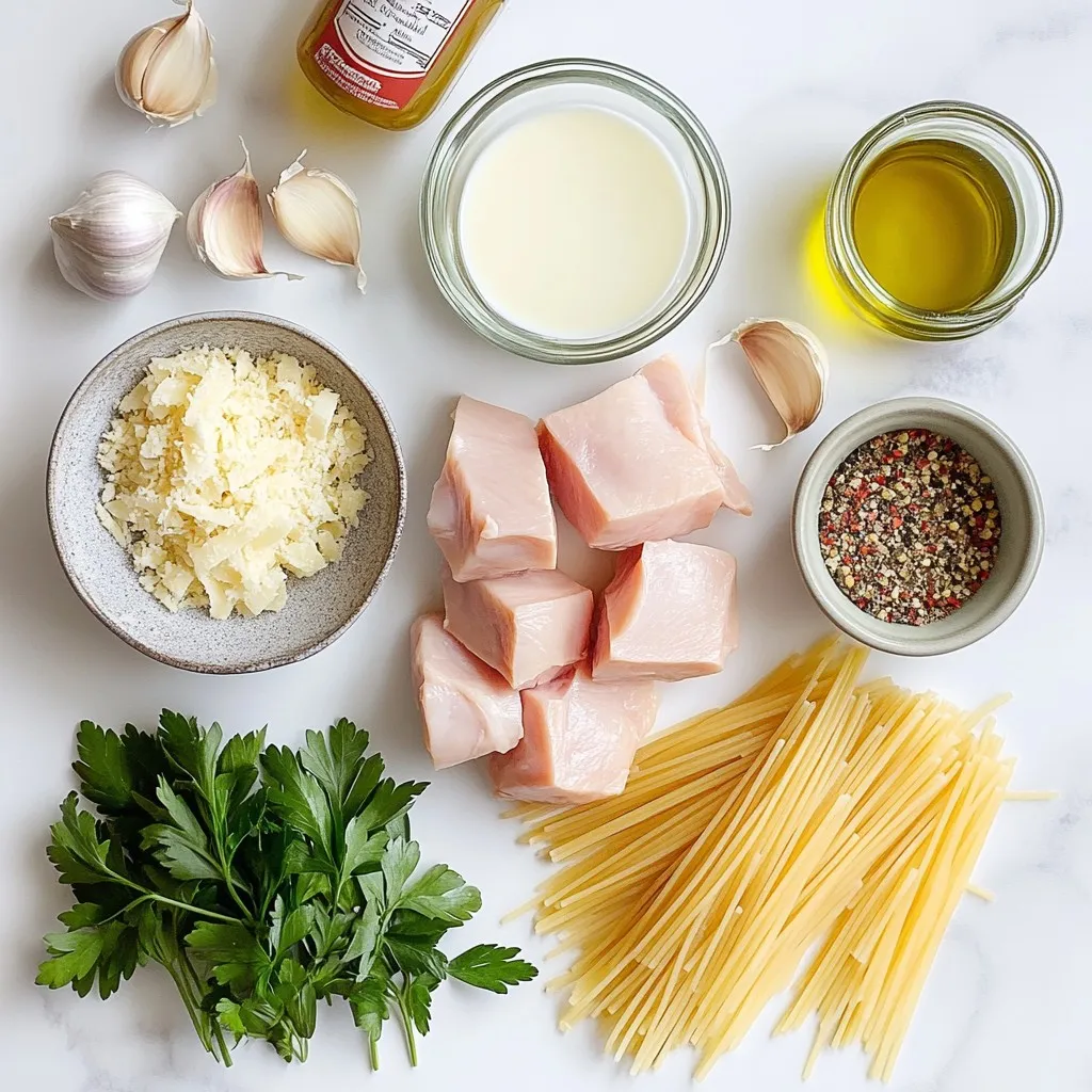 To elevate the flavor, I add minced garlic, which brings in a lovely aroma. Olive oil helps to sauté the chicken, enhancing its taste. Italian seasoning adds a hint of herbs, while salt and pepper balance the flavors. Lastly, fresh parsley not only garnishes the dish but also gives it a pop of color.