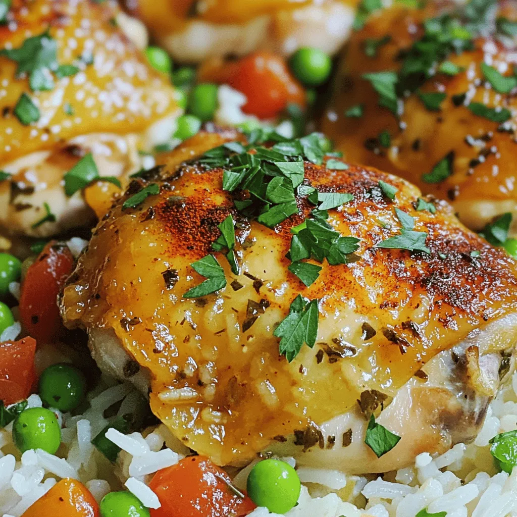 Spoon the chicken and rice onto plates. Garnish with freshly chopped parsley for a pop of color. Enjoy your comforting meal!