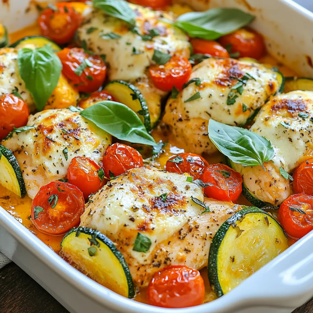 These fresh ingredients create a colorful and tasty dish. The chicken stays juicy, while the veggies add a crunch. The cheeses melt into the bake, giving it a creamy finish. You can adjust the red pepper flakes for spice. Fresh basil adds a pop of flavor if you choose to use it. Each ingredient plays a role in making this meal special.