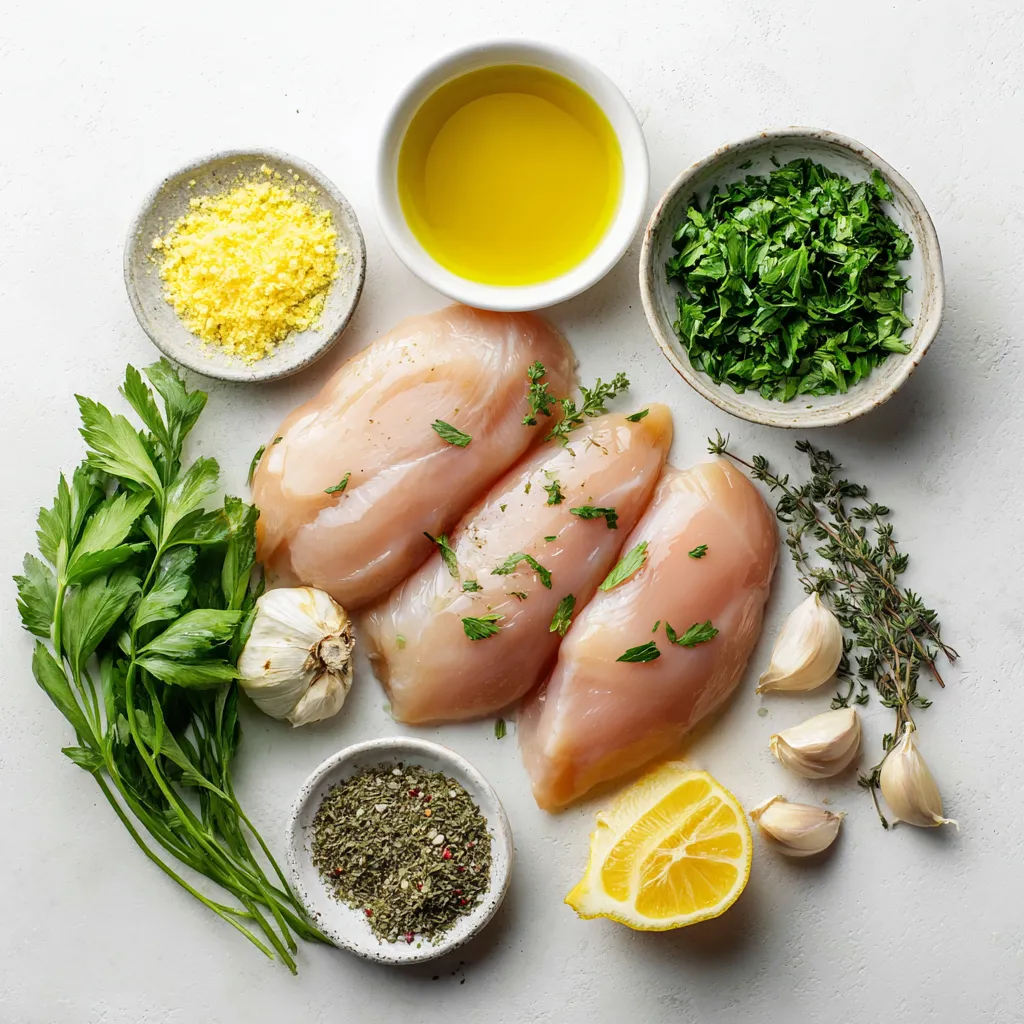First, set your oven to 400°F (200°C). This high heat helps the chicken cook fast and stay juicy. While the oven warms up, grab a small bowl. In this bowl, mix 3 tablespoons of olive oil, 2 teaspoons of dried oregano, 2 teaspoons of dried basil, and 1 teaspoon of dried thyme. Then, add 3 cloves of minced garlic, 1 teaspoon of lemon zest, salt, and pepper to taste. Stir this mixture well. This will be your flavorful marinade.