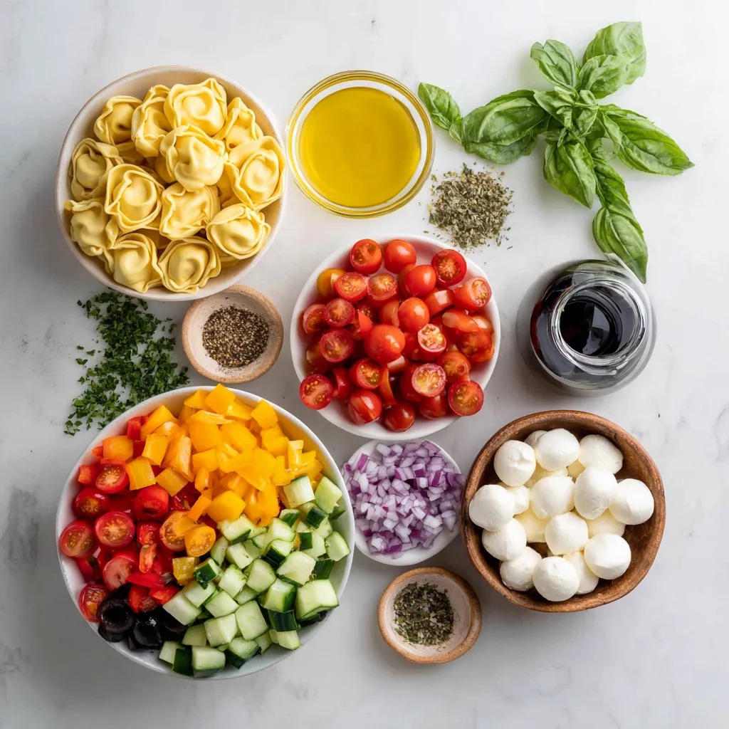 You need the right ingredients for a great Italian tortellini pasta salad. Start with cheese tortellini. It adds a rich, creamy taste. Then, gather fresh, colorful veggies. Cherry tomatoes give a sweet burst. Cucumbers add crunch. Bell peppers bring color and flavor. Don’t forget the red onion for a sharp bite. Black olives add a salty touch. Finally, mozzarella balls provide a soft, chewy texture. Fresh basil adds a nice herbal note.