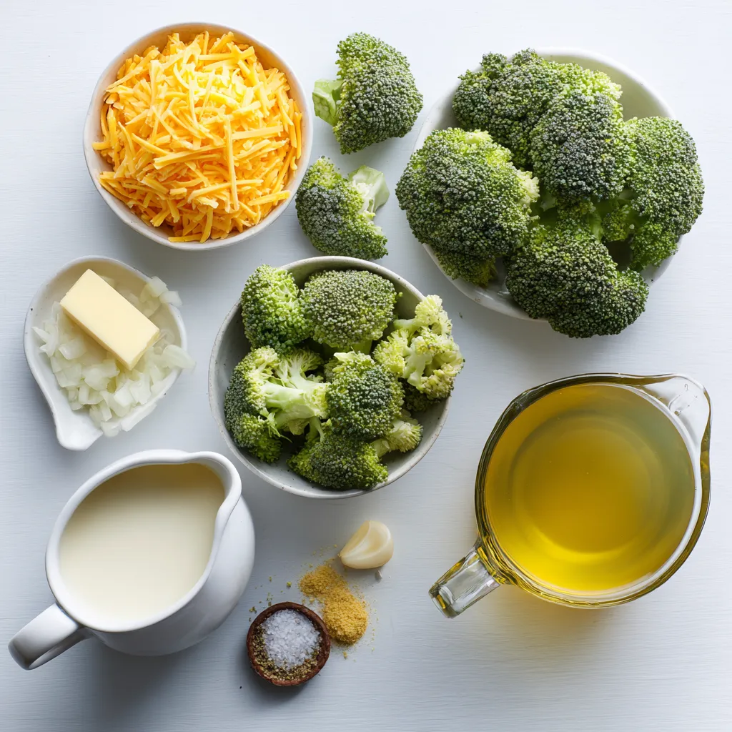 Each ingredient plays a key role. Fresh broccoli gives the soup its base and nutrition. Sharp cheddar cheese adds rich flavor and creaminess. Heavy cream makes the soup smooth and decadent. Vegetable broth brings all the flavors together.