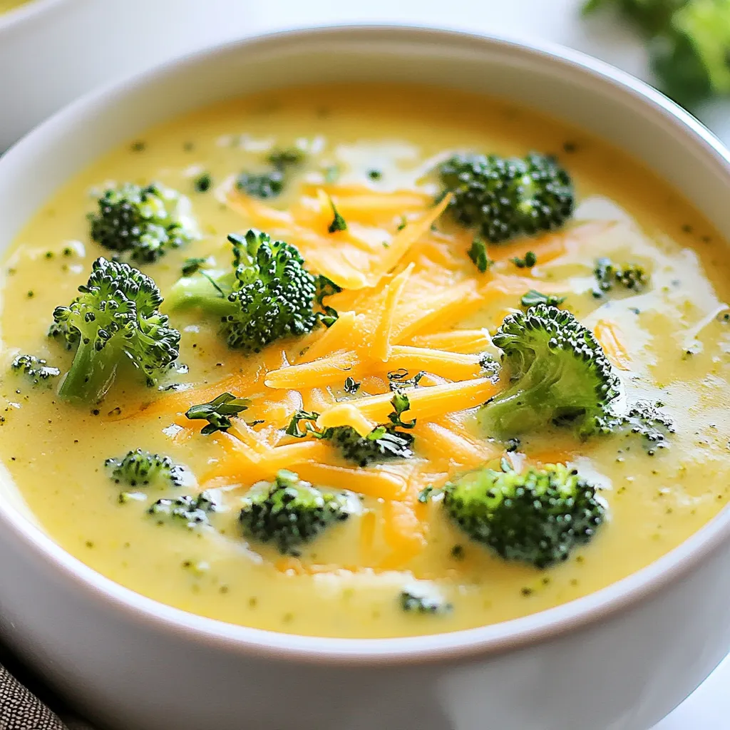Before serving, taste the soup. Adjust the salt and pepper as needed. This step ensures the soup tastes just right. For a nice touch, serve the soup with extra cheddar on top. You can also add a few small broccoli florets for garnish. A drizzle of olive oil will make it look even better.