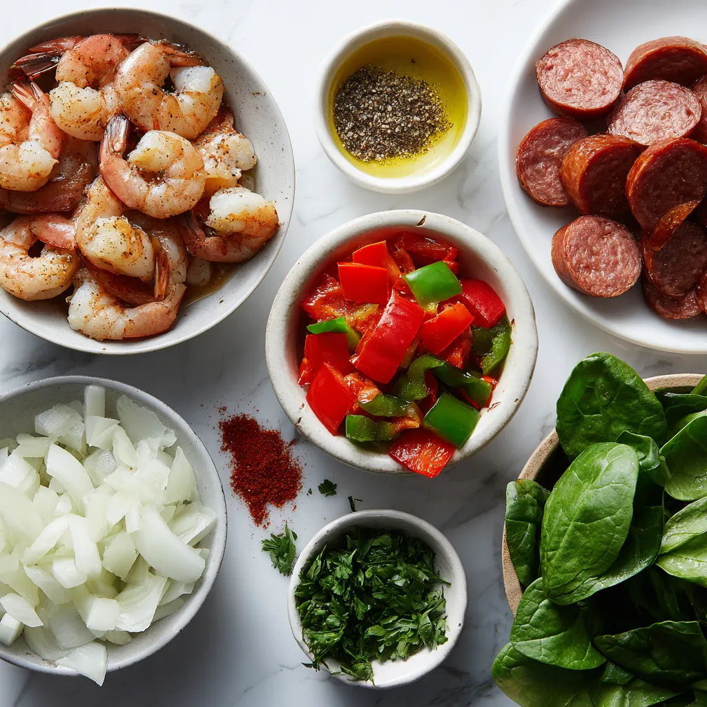 I love using raw shrimp in this dish. They cook fast and absorb flavors well. Smoked sausage adds a rich taste and hearty texture. You can pick chicken or turkey sausage for a lighter meal. Fresh veggies bring color and crunch. I use bell peppers for sweetness and onion for depth. Garlic adds a punch of flavor. The spices, like smoked paprika and oregano, bring warmth and earthiness.