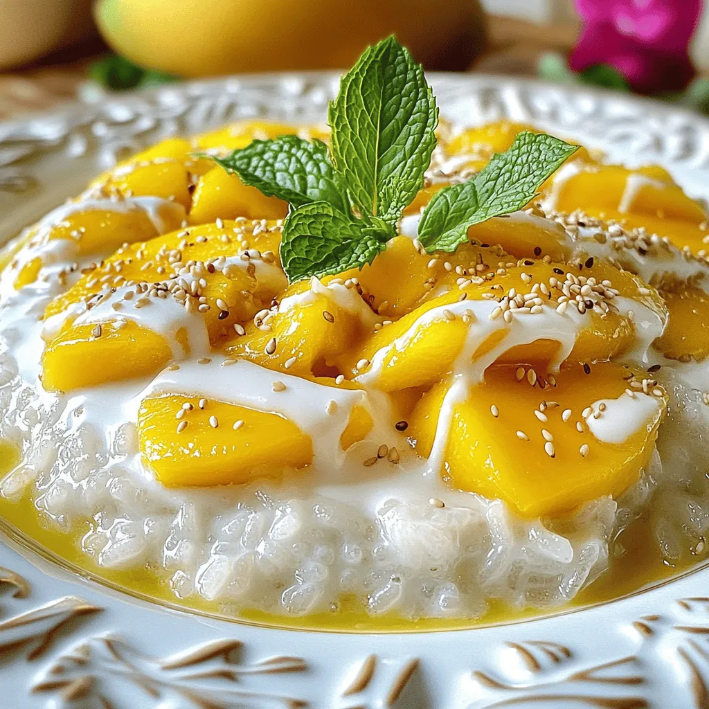 Add a twist to your mango sticky rice pudding. You can enhance the flavor with spices. A hint of vanilla or a pinch of salt can elevate the taste. Consider adding a dash of cinnamon for warmth. It pairs well with the coconut milk.