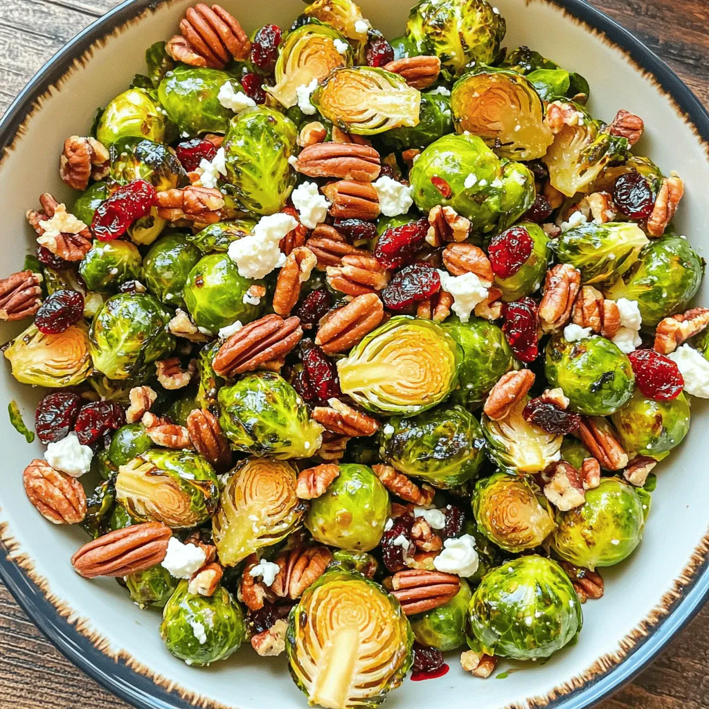Once the Brussels sprouts have cooled slightly, it’s time to assemble the salad. In a large bowl, mix the roasted Brussels sprouts, chopped pecans, and dried cranberries. Drizzle the maple Dijon dressing over the top. Toss everything gently to combine. If you want, sprinkle crumbled feta cheese on top for extra flavor. This adds a delicious creaminess that pairs well with the dish.