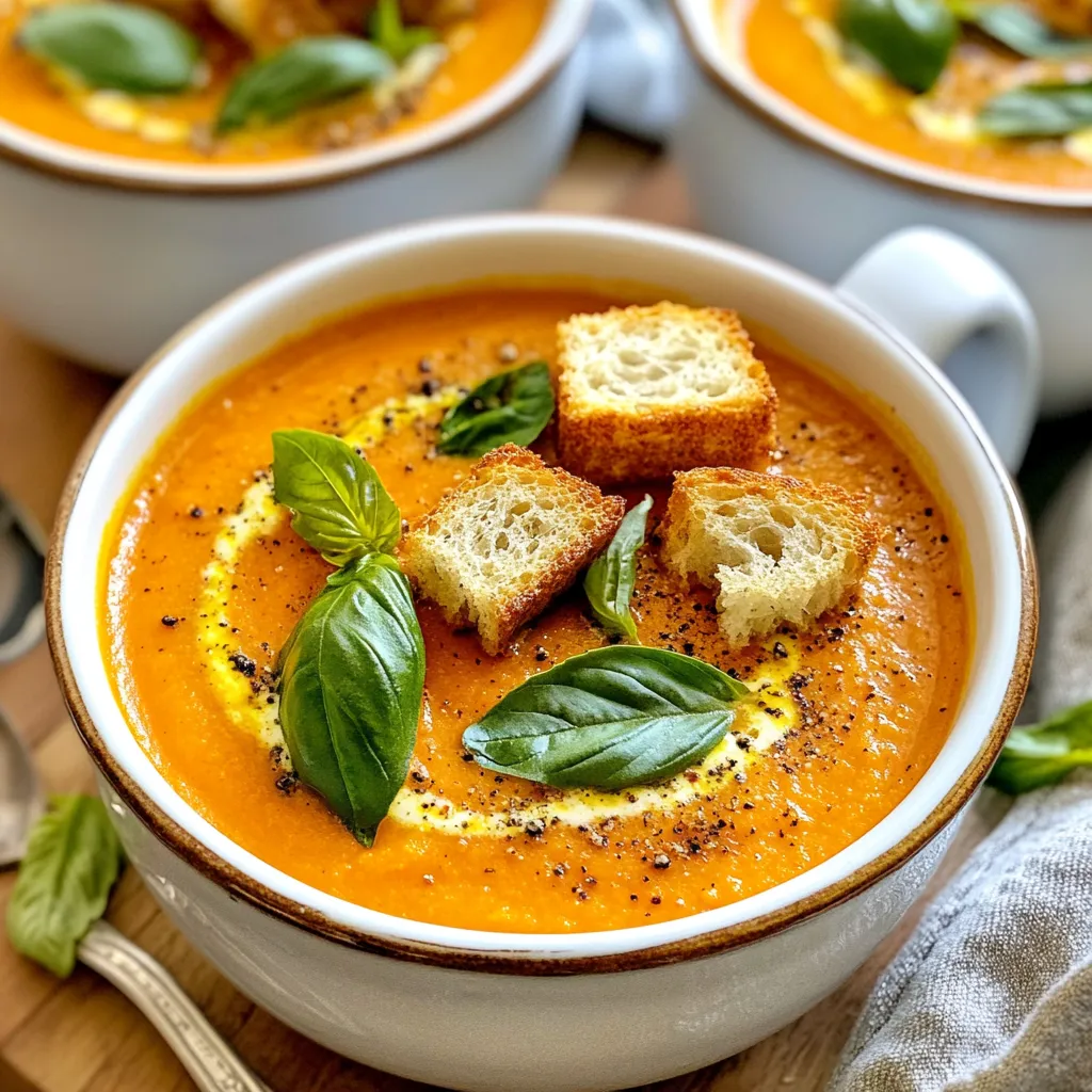 - Ladle the soup into bowls and garnish with fresh basil leaves. If you like, add croutons on top for extra texture. Enjoy each spoonful of this vibrant soup!