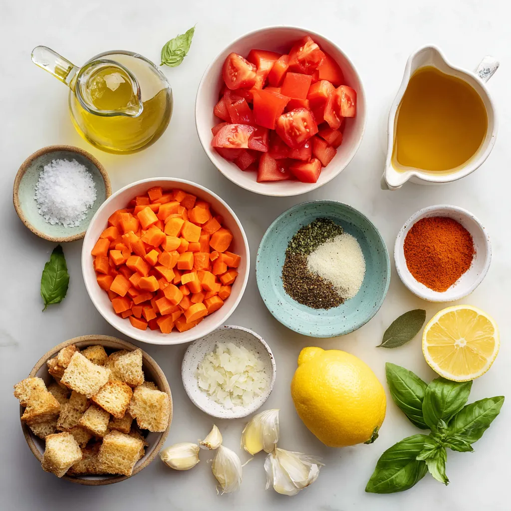 Each ingredient plays a key role in creating a rich, vibrant flavor. The ripe tomatoes give a sweet base, while the carrots add natural sweetness. Onions and garlic build depth and aroma. Cumin and smoked paprika bring warmth and a hint of smokiness. The vegetable broth ties it all together, making the soup hearty and comforting. Don't forget the fresh basil for a pop of freshness and croutons for crunch.