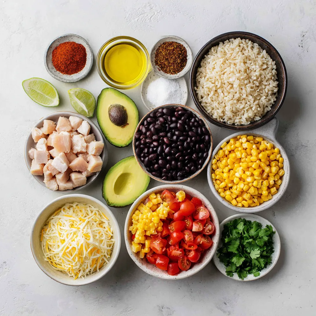 I love using boneless, skinless chicken breasts for this dish. They grill up juicy and tender. Brown rice is my go-to for a hearty base. It adds a nice nutty flavor. I like to include black beans and corn for extra fiber and sweetness. Fresh toppings like diced tomato and avocado make it bright and fresh. Don't forget the cheddar cheese and cilantro for that flavor kick!
