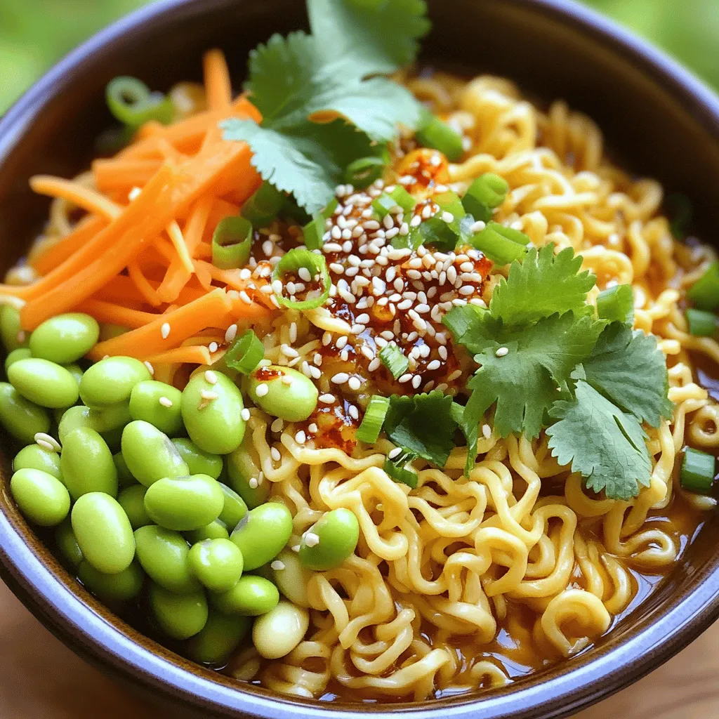 You can boost the protein in your ramen easily. Try adding tofu or chicken for a hearty meal. Tofu absorbs flavors well, making it great in this dish. Just cube it and toss it in when you mix the noodles with the sauce. If you prefer chicken, cook it first, then shred it before adding.