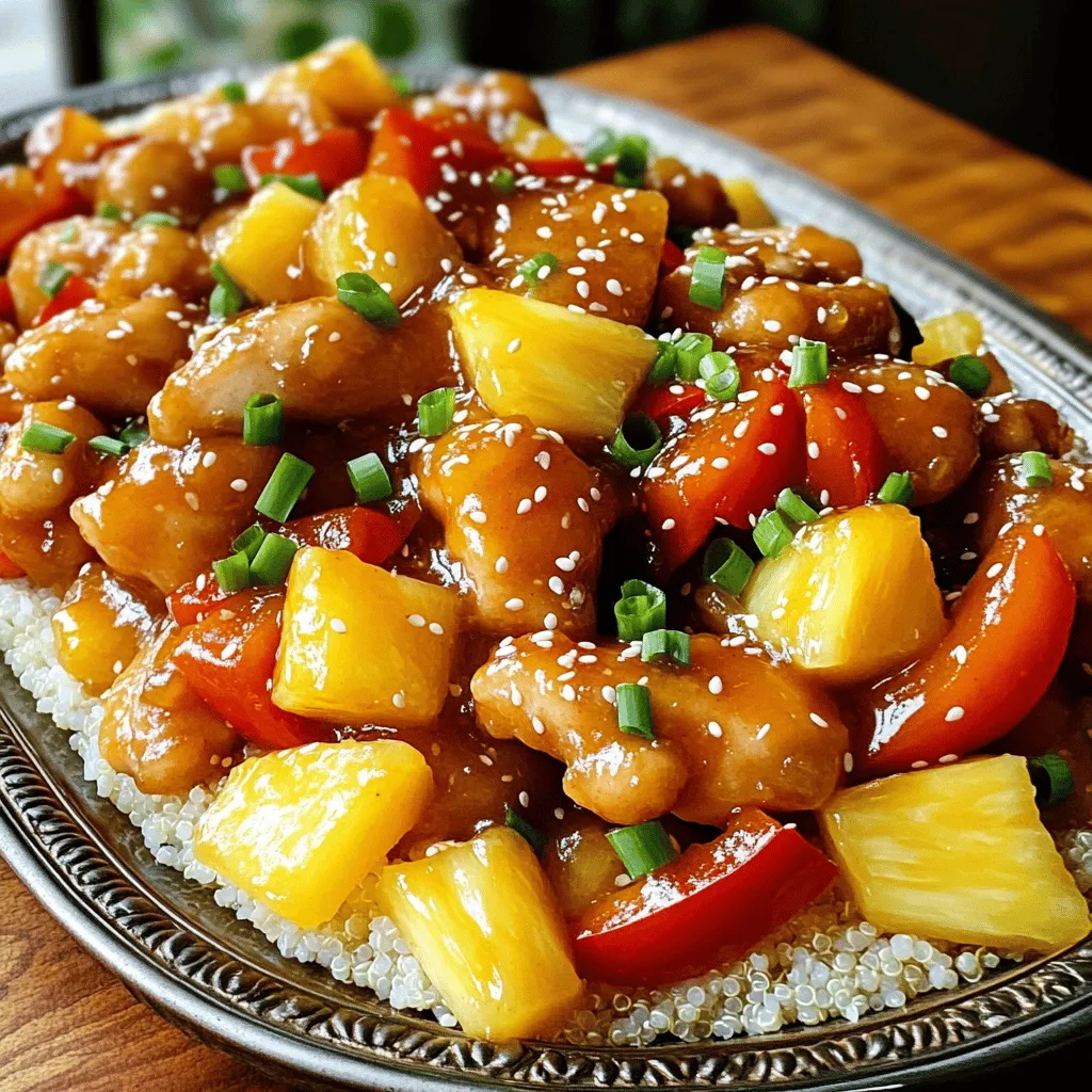 For garnishes, sprinkle sesame seeds on top for a nice crunch. You can also add chopped green onions for a fresh taste. When it comes to side dishes, serve your sweet and sour chicken over fluffy rice or quinoa. Both add great texture and soak up the sauce well.