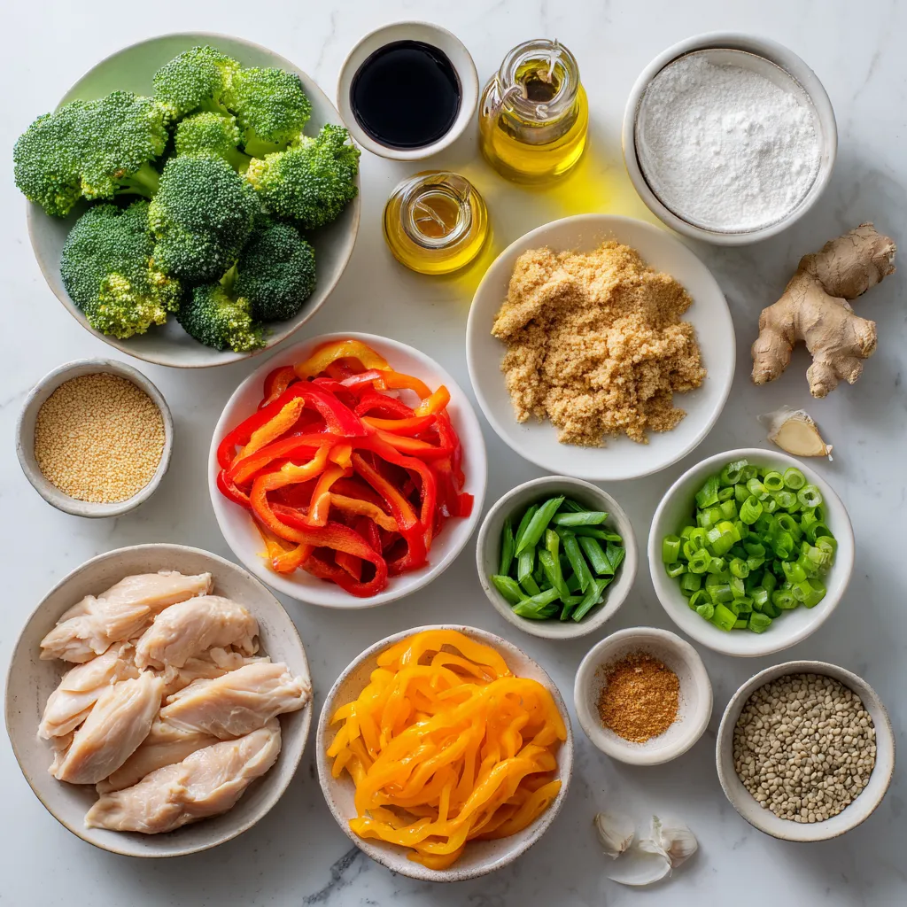 To make Mongolian chicken stir fry, you need fresh ingredients. For the chicken, thinly slice one pound of chicken breast. This helps it cook quickly. For the marinade, mix the chicken with cornstarch, salt, and pepper. Let it sit for about 15 minutes to soak up the flavors.