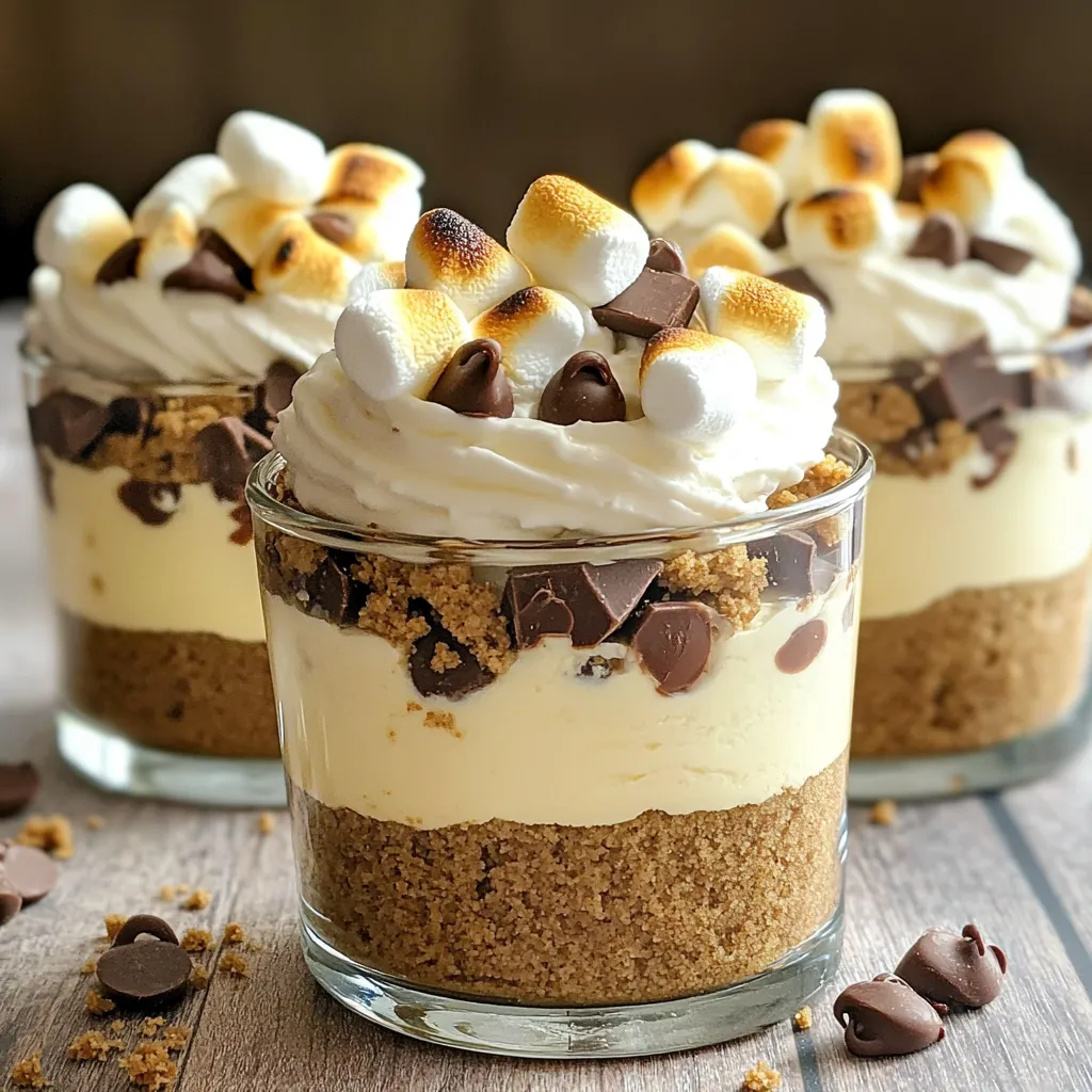 Toppings make this dessert fun and appealing. Whipped cream adds fluffiness and lightness. Mini marshmallows give that classic s'mores touch. Chocolate chips provide rich, melted chocolate goodness. For garnish, you can add extra mini marshmallows and chocolate pieces on top.