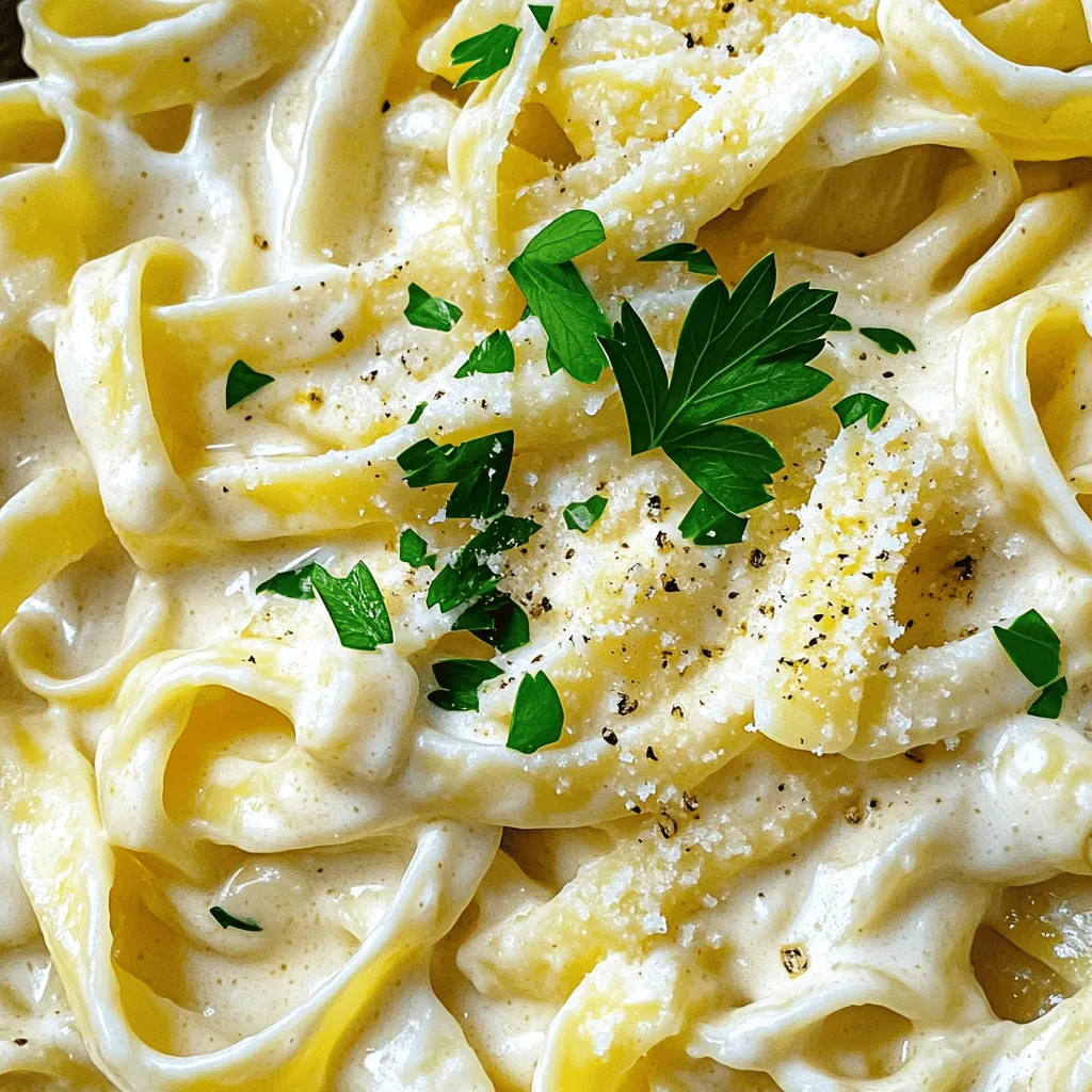 To make a perfect Alfredo sauce, I always start with fresh ingredients. Use unsalted butter for a smooth base. Melt it gently in a pan; this keeps it creamy. Next, add minced garlic. Sauté it just until fragrant to avoid a burnt taste. Pour in heavy cream slowly while stirring. This helps the cream blend well with the butter. Let it simmer for a few minutes. This step makes the sauce thicker. Gradually stir in freshly grated Parmesan cheese. The cheese adds rich flavor and creaminess. If the sauce is too thick, add a splash of reserved pasta water. This will help achieve your desired consistency.